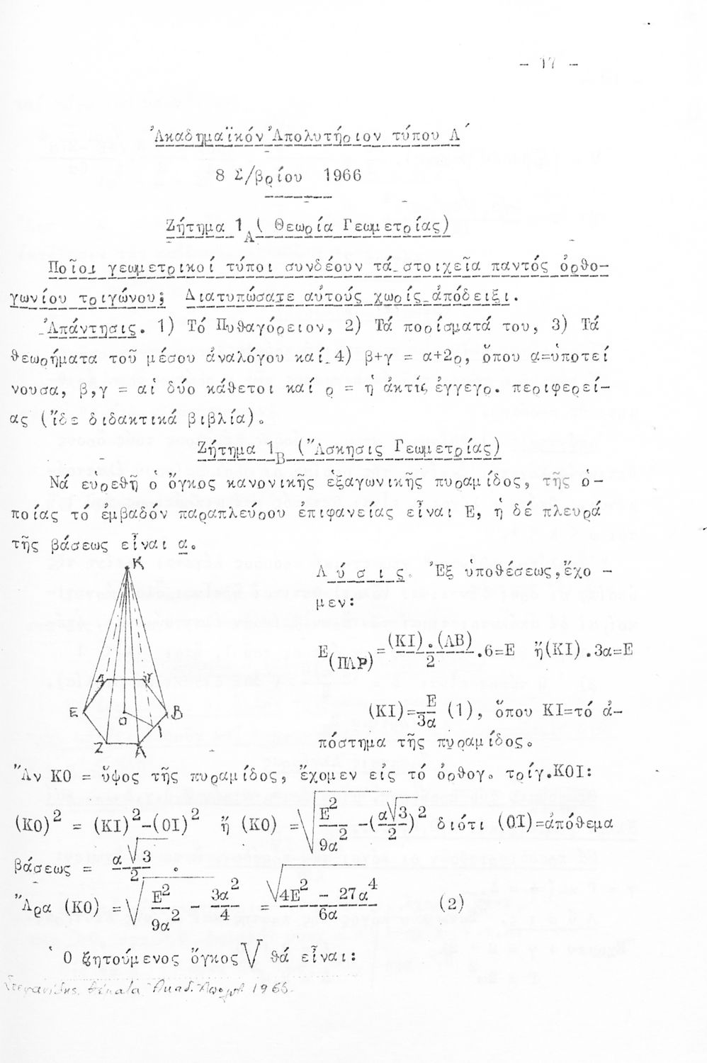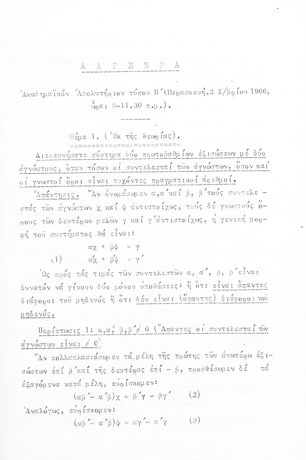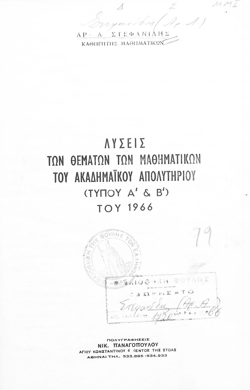 Μαθητικό βοήθημα Μαθηματικών που περιέχει λύσεις των ασκήσεων για τους υποψηφίους του ακαδημαϊκού απολυτηρίου τύπου Α και Β.