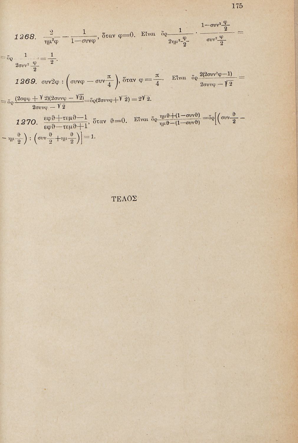 Ασκήσεις Τριγωνομετρίας και Λύσεις Αυτών – Λύσεις των 1270 εκλεκτών ασκήσεων των περιεχομένων εν τη μεγάλη επίπεδης Τριγωνομετρία του