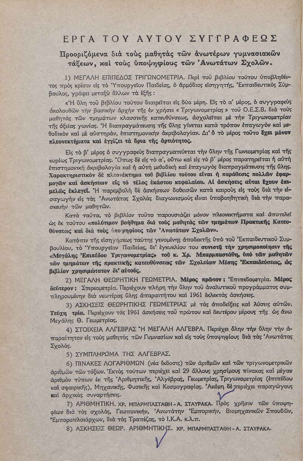 Μαθητικό βοήθημα Γεωμετρίας για τους υποψήφιους των Ανωτάτων του Κράτους Σχολών, τους σπουδαστές των Στρατιωτικών Σχολών Ευελπίδων, Δοκίμων, Ικάρων, των μαθητών των Πρακτικών Λυκείων, τους σπουδαστές της ...