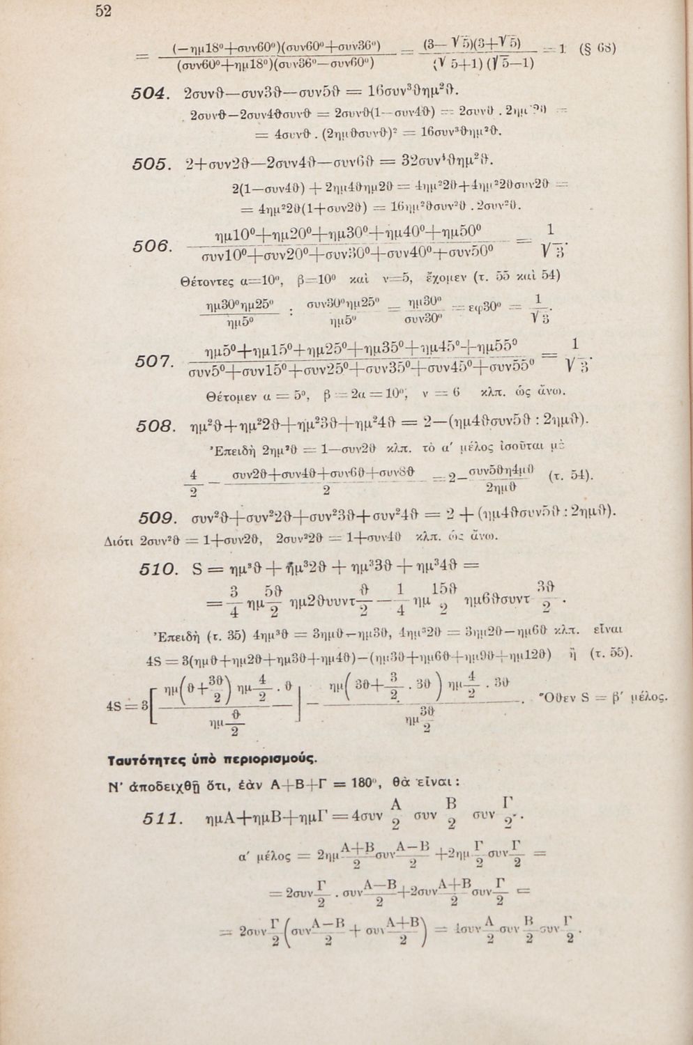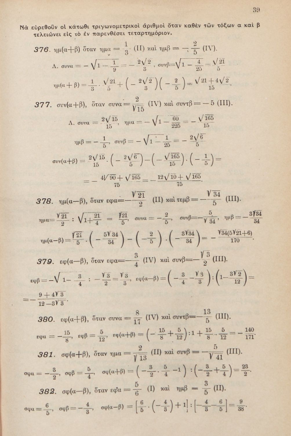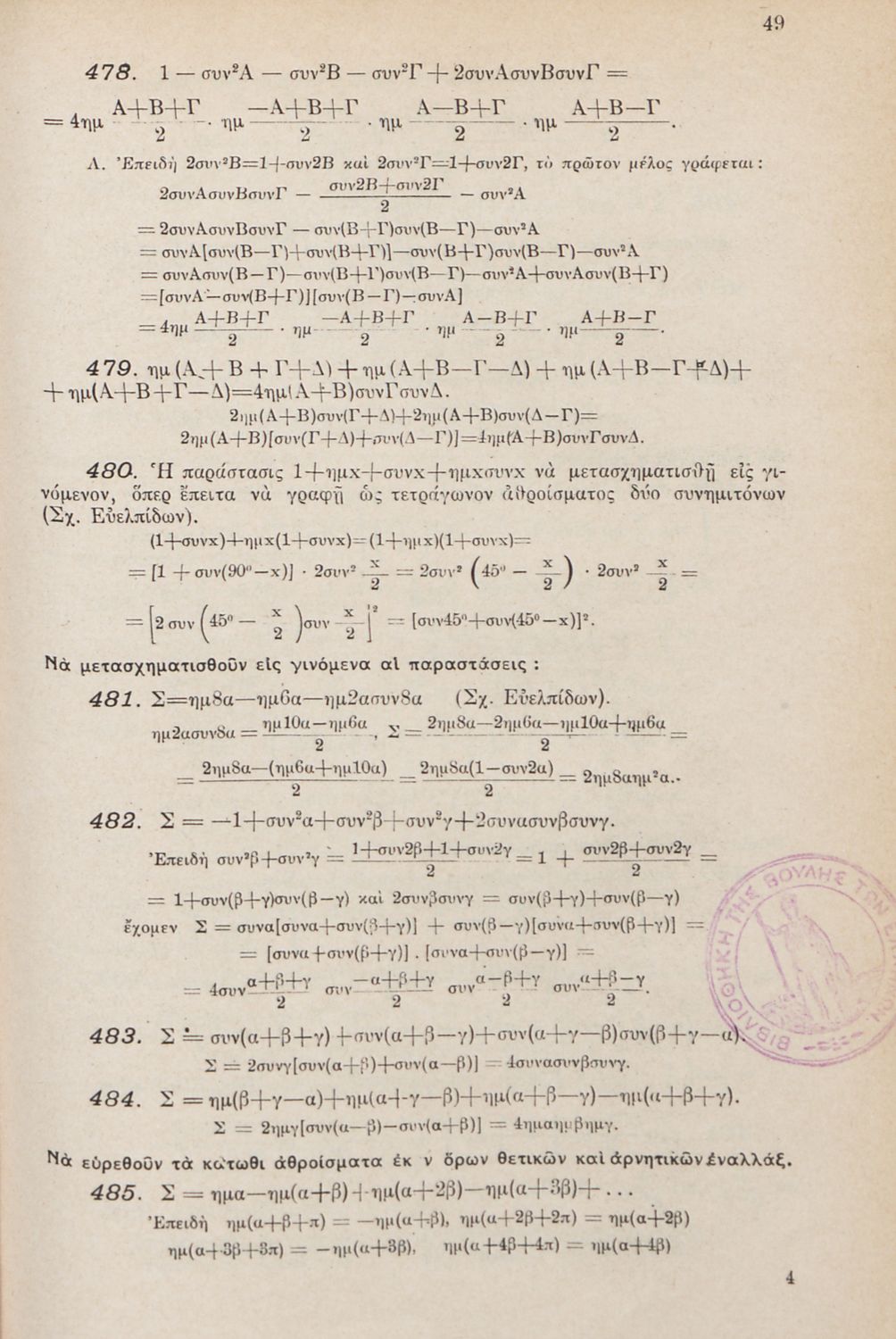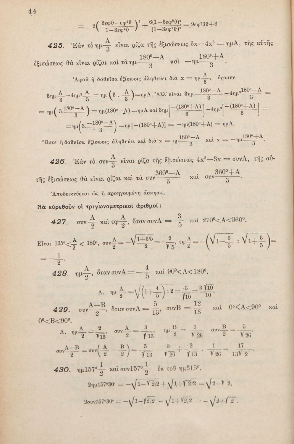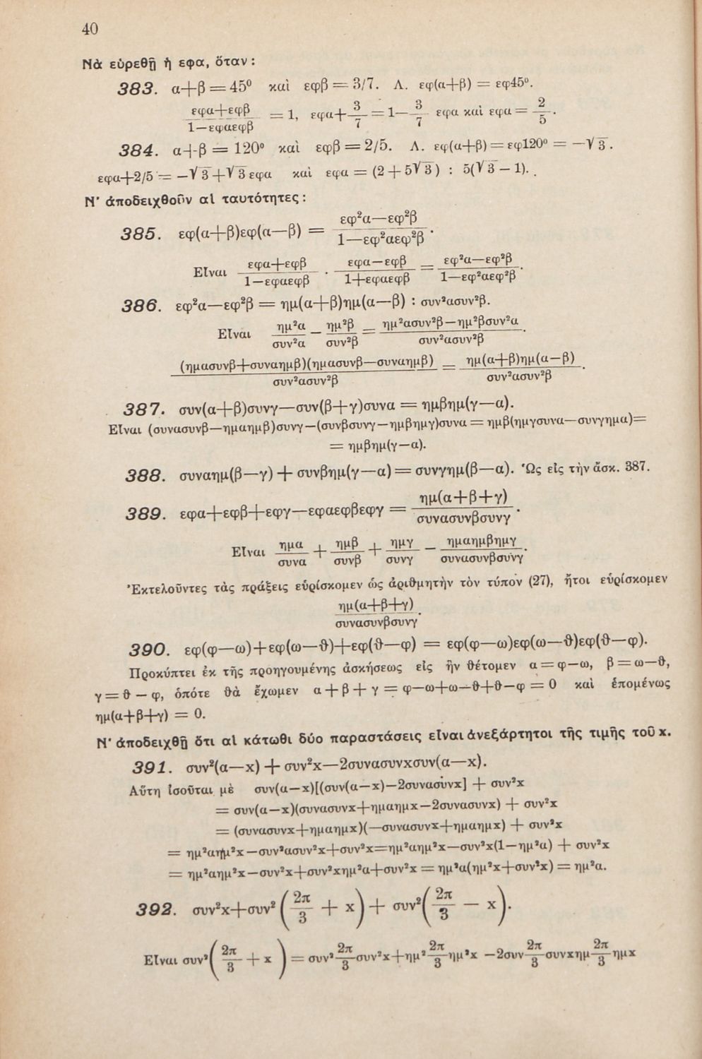Ασκήσεις Τριγωνομετρίας και Λύσεις Αυτών – Λύσεις των 1270 εκλεκτών ασκήσεων των περιεχομένων εν τη μεγάλη επίπεδης Τριγωνομετρία του