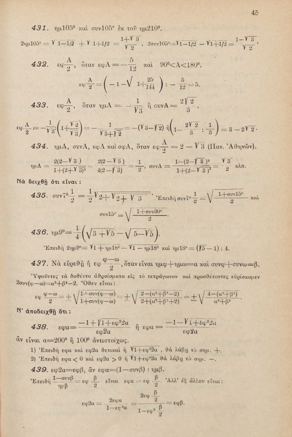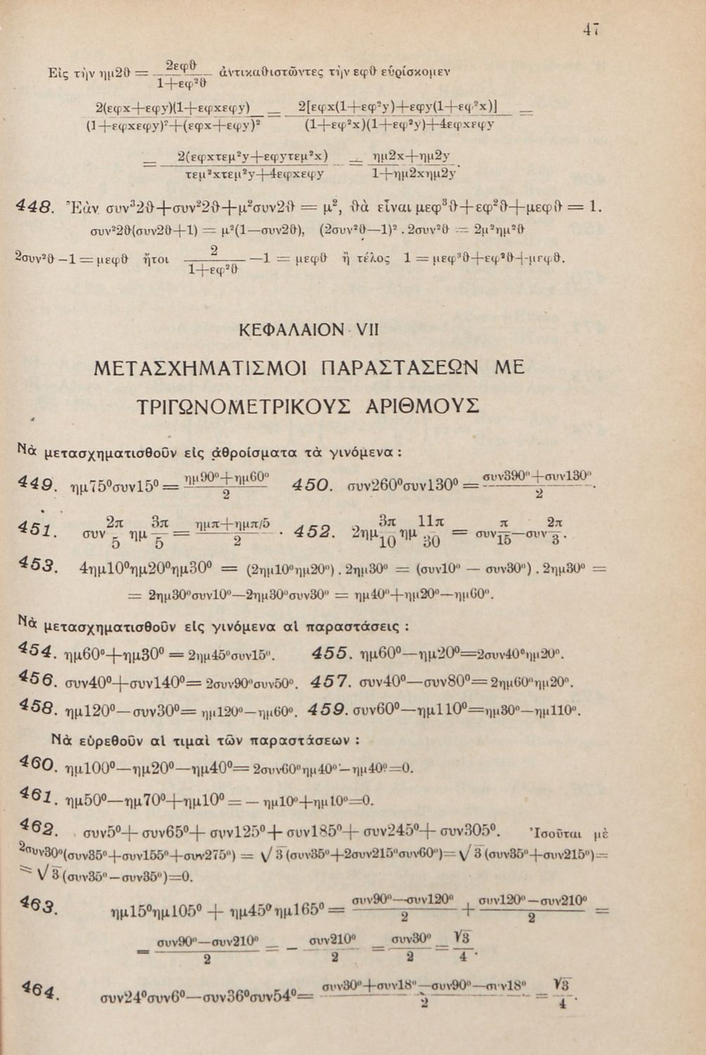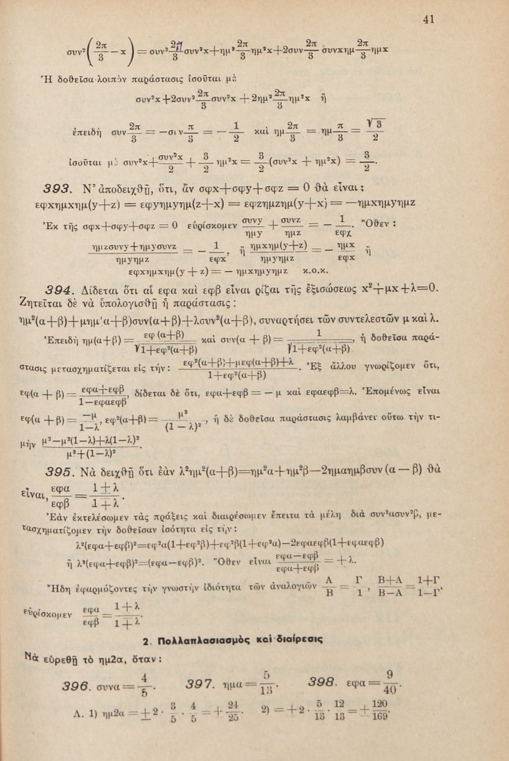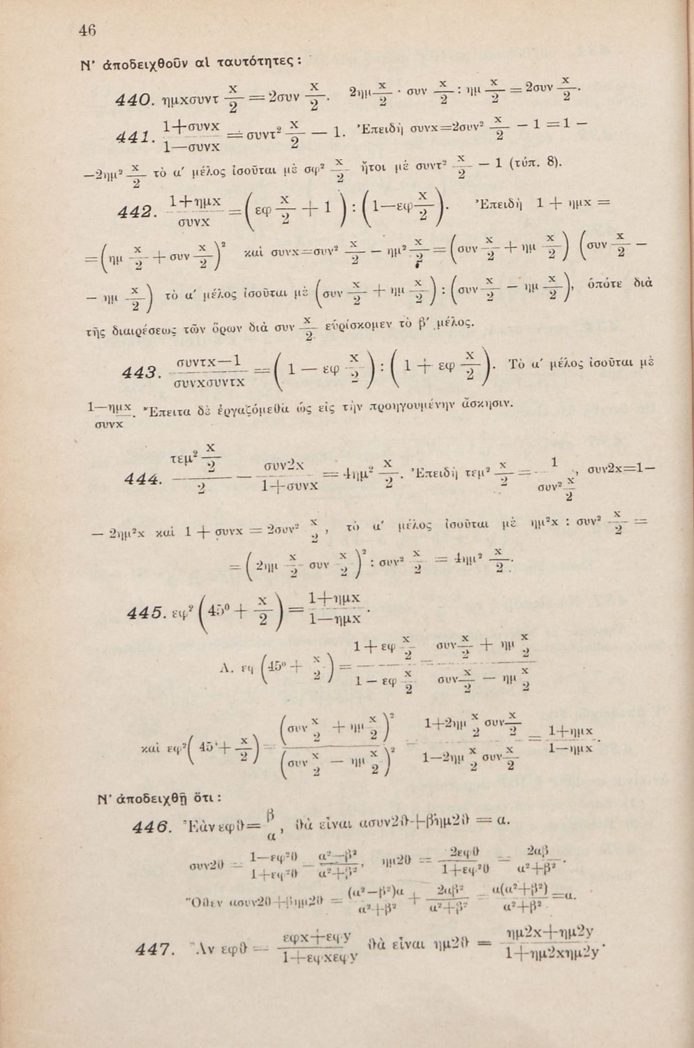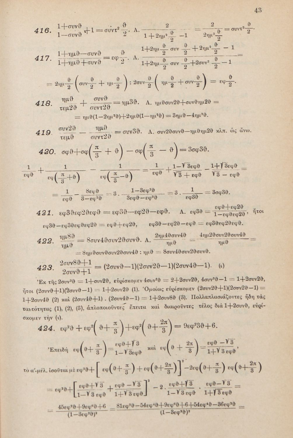 Ασκήσεις Τριγωνομετρίας και Λύσεις Αυτών – Λύσεις των 1270 εκλεκτών ασκήσεων των περιεχομένων εν τη μεγάλη επίπεδης Τριγωνομετρία του