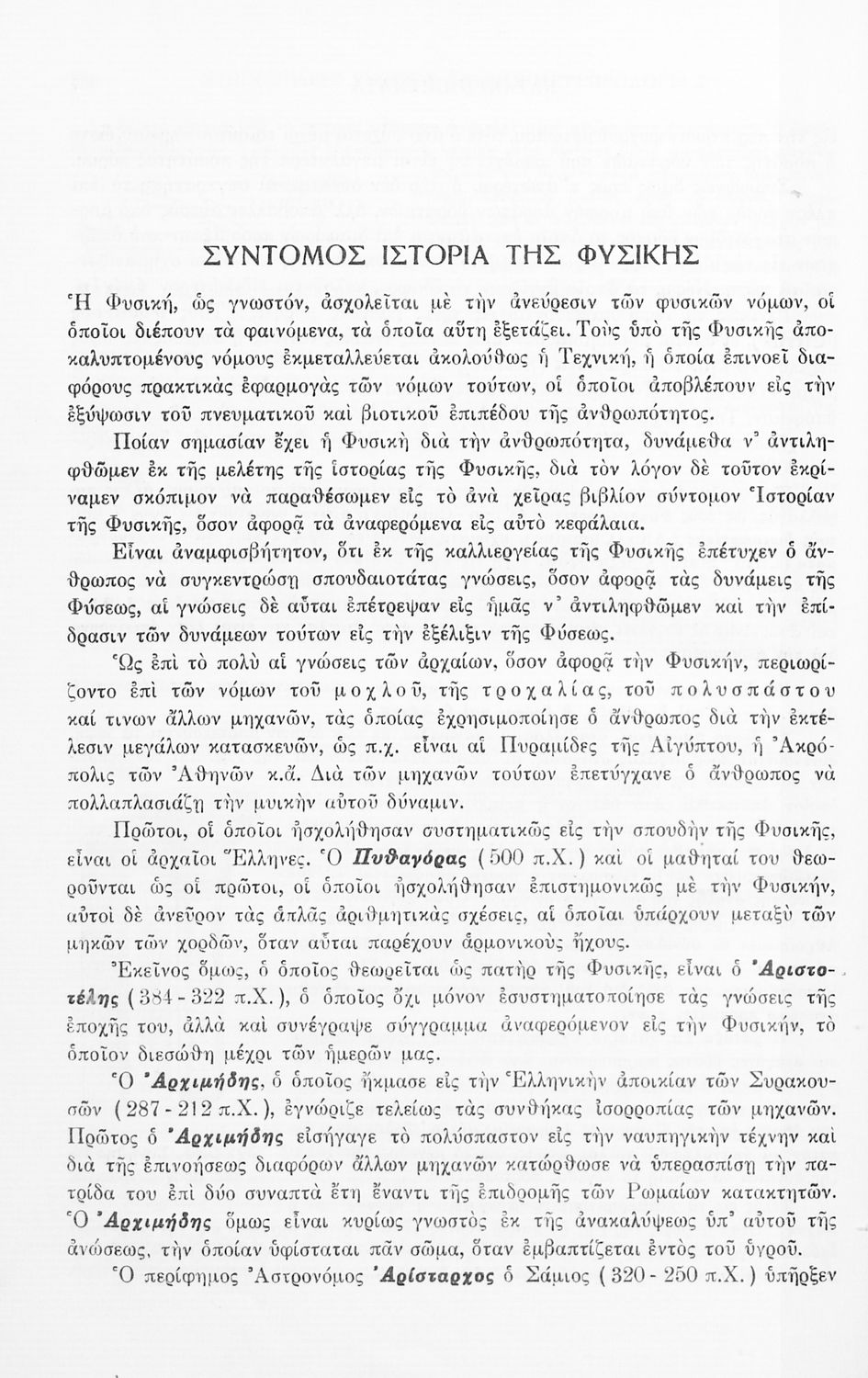 Μαθητικό βοήθημα Φυσικής για τους υποψηφίους των εισαγωγικών εξετάσεων των Ανωτάτων Σχολών και των μαθητών των ανωτέρων τάξεων των Σχολείων Μέσης Εκπαιδεύσεως. Το βιβλίο αναλύει ζητήματα μηχανικής, ακουστικής και θερμότητας εστιάζοντας στη κίνηση και την ενέργεια των σωμάτων, τον ηλεκτρισμό, τα κυκλώματα και την ηλεκτρομαγνητική θεωρία.