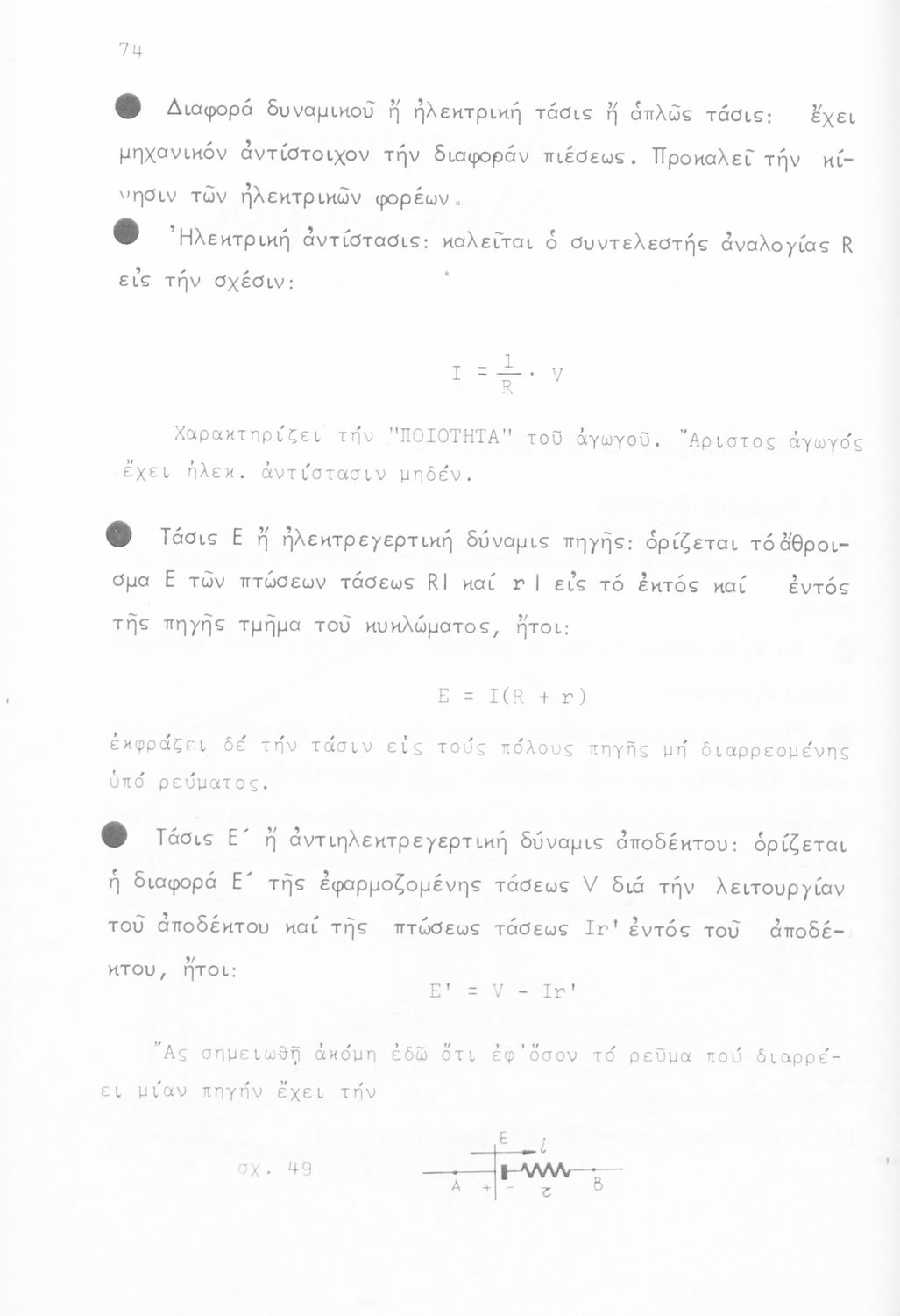 Σχολικό εγχειρίδιο Φυσικής. Το βιβλίο χωρίζεται σε τέσσερα μέρη καθένα από τα οποία περιγράφει συγκεκριμένο πεδίο της φυσικής (οπτική, μαγνητισμός, ηλεκτρισμός κλπ.). Ερμηνεύονται τα φυσικά μεγέθη, δίνονται οι