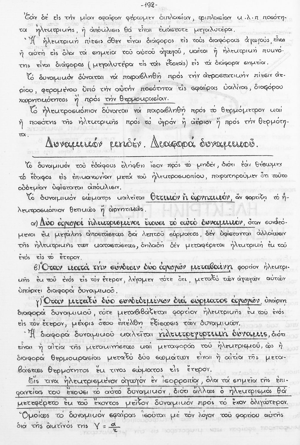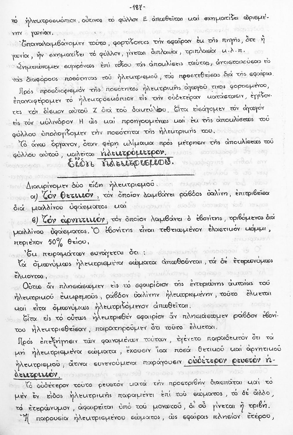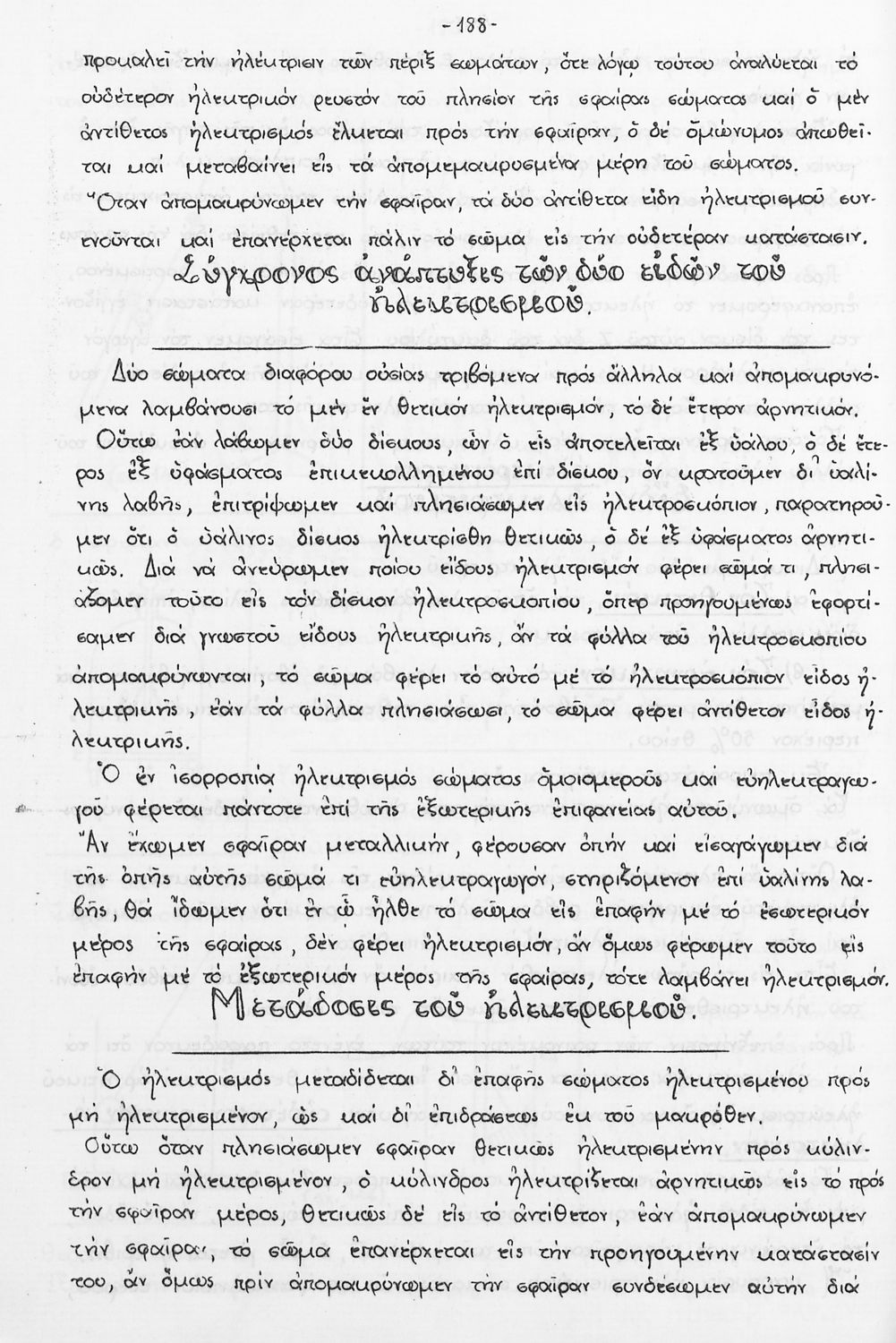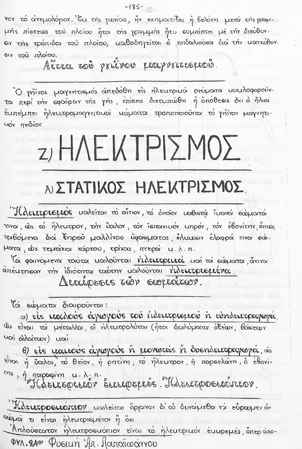 Μαθητικό βοήθημα Φυσικής για τους υποψήφιους των Πανεπιστημίου, ως και των λοιπών διαφόρων ανώτερων Σχολών του Κράτους. Το βιβλίο καλύπτει τις θεματικές του ηλεκτρισμού, του μαγνητισμού και του ηλεκτρομαγνητισμού μέσω επεξηγηματικών σημειώσεων και ασκήσεων για εξάσκηση των υποψηφίων.