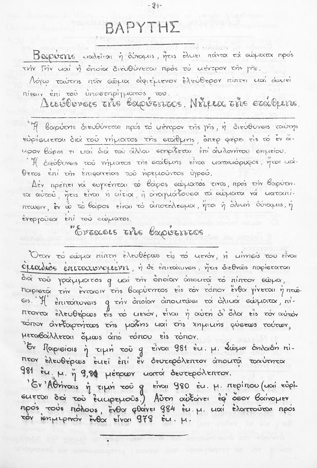 Σημειώσεις Φυσικής, προς χρήσιν των υποψήφιων των εισιτηρίων του Πανεπιστημίου, ως και των λοιπών διαφόρων ανωτέρων Σχολών του Κράτους