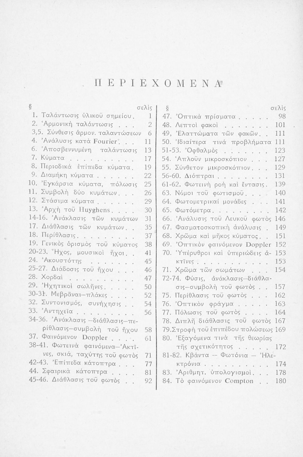 Κυμάνσεις, Ακουστική – Οπτική προς χρήσιν των μαθητών των φυσικομαθηματικών τμημάτων των λυκείων