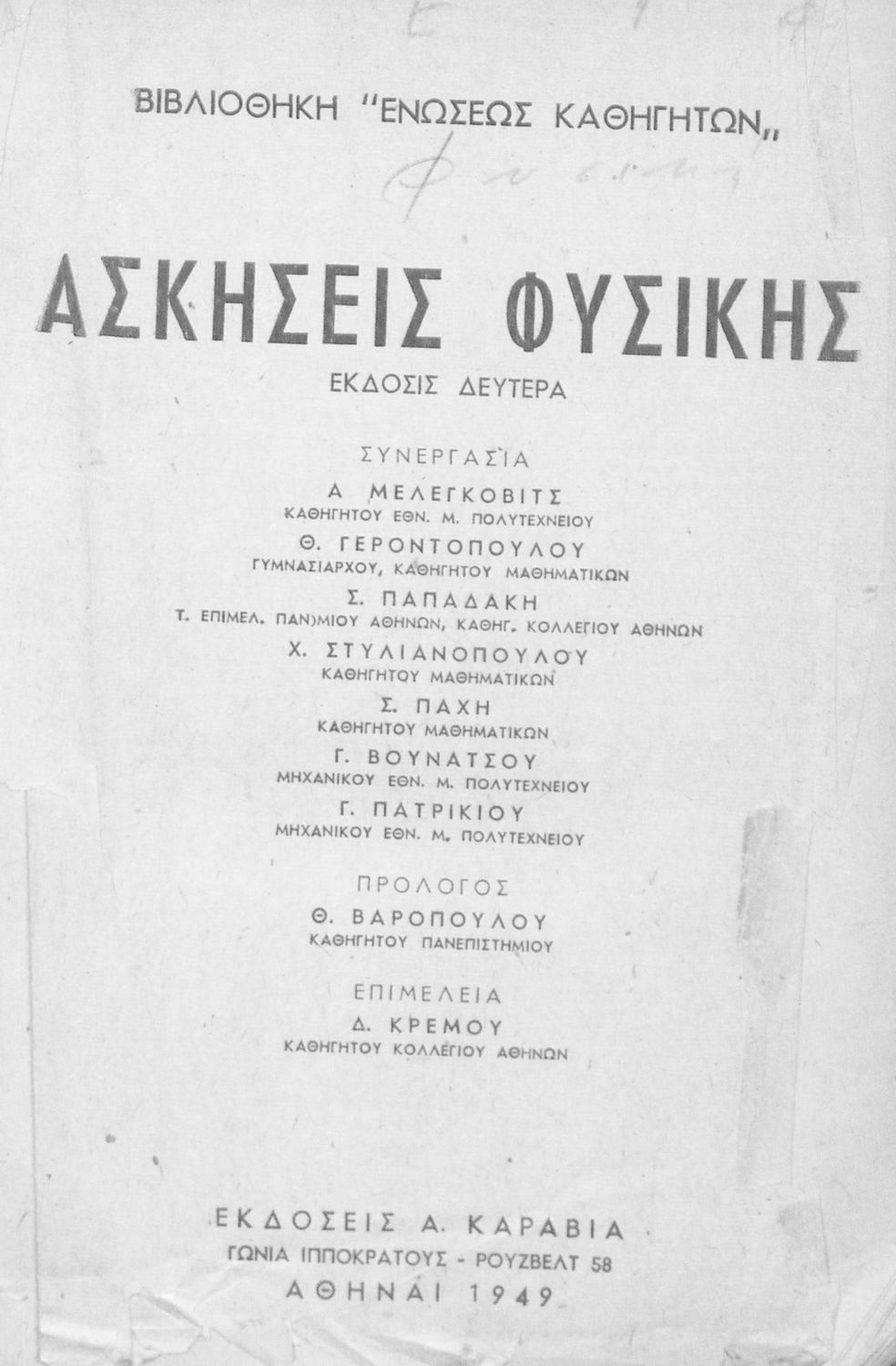 Εκδότης: Α. Καραβιάς Έτος έκδοσης: 1949 Τόπος έκδοσης: Αθήνα Έκδοση: 2η |