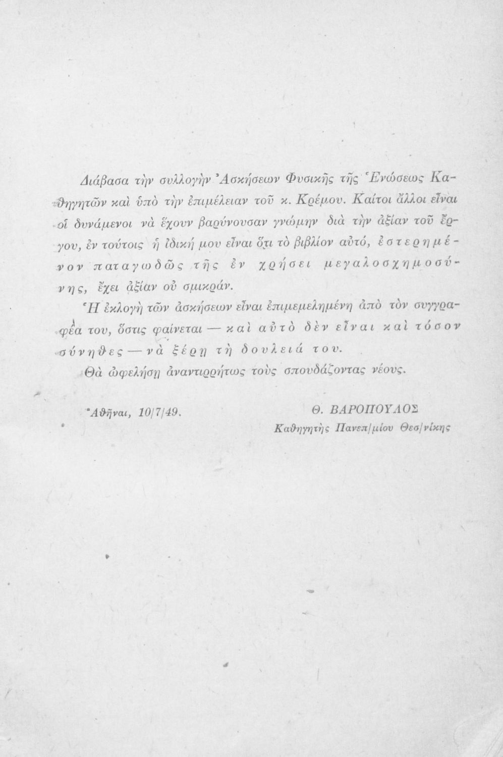 Κωδικός αναγνώρισης: 03-20638109 Τίτλος: Ασκήσεις Φυσικής Συγγραφέας: Α. Μελέγκοβιτς, Θ. Γεροντόπουλος, Σ. Παπαδάκης, Χ. Στυλιανόπουλος, Σ. Παχής, Γ. Βουνάτσος, Γ. Πατρίκιος, Θ. Βαρόπουλος, Δ. Κρέμος Μέγεθος και υπόστρωμα: Μαθητικό βοήθημα, σκληρό εξώφυλλο, 400 σελίδες. |