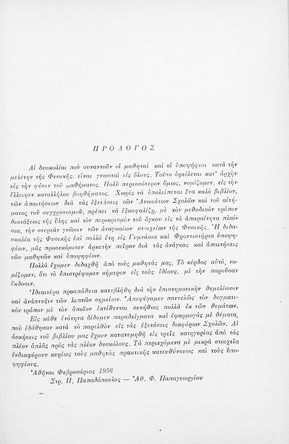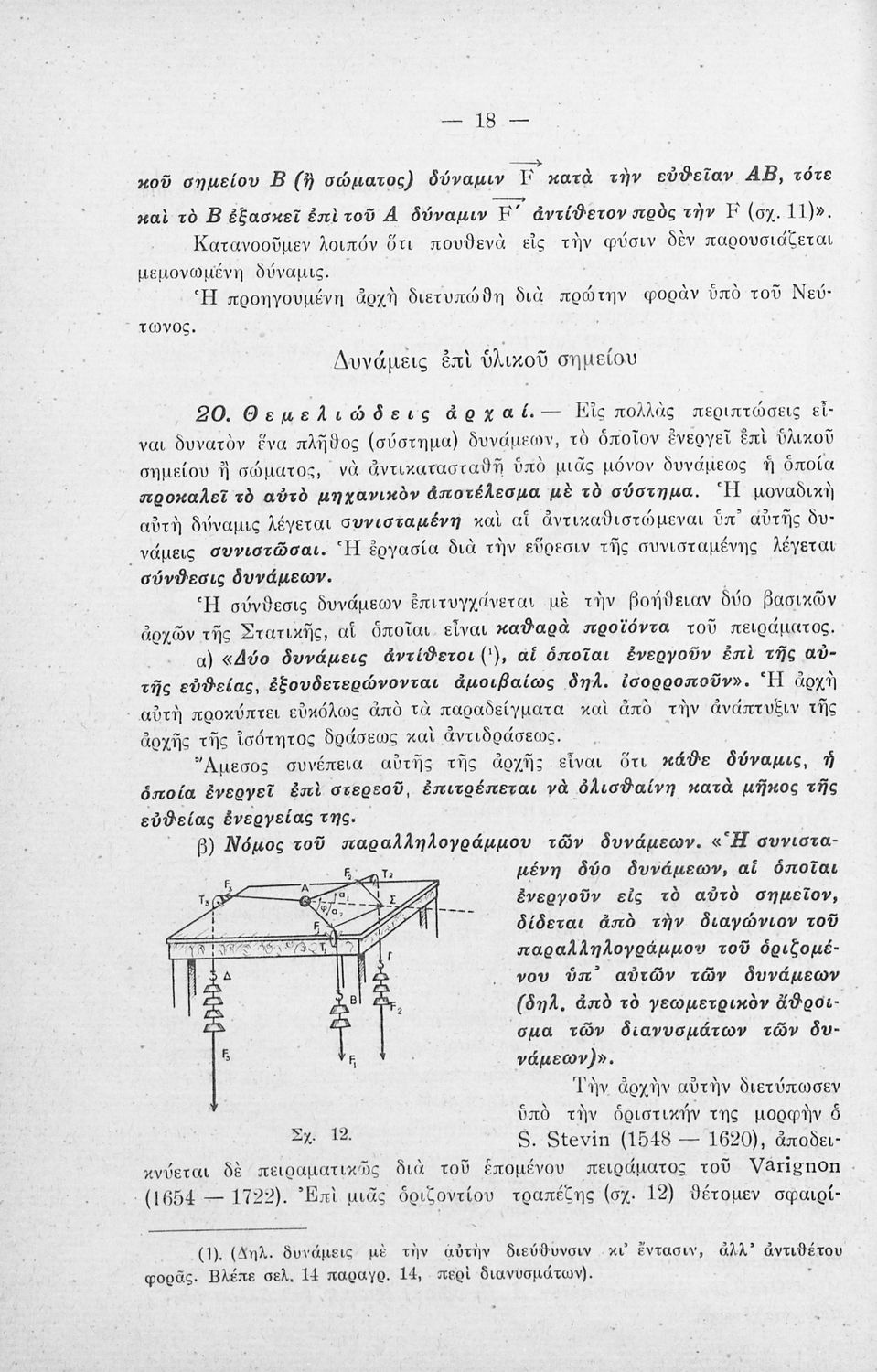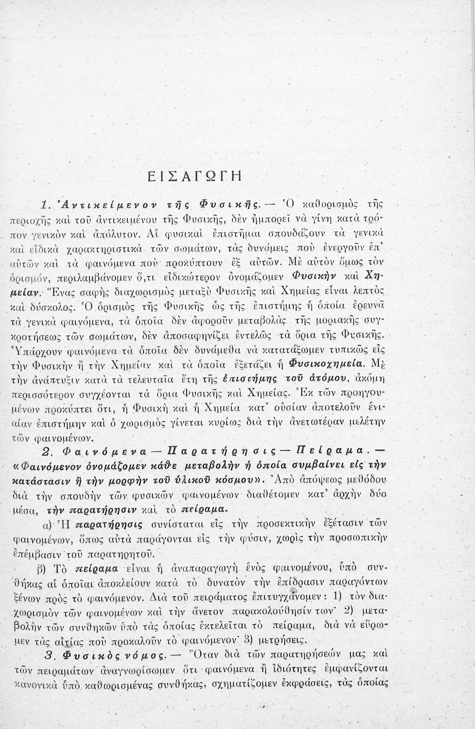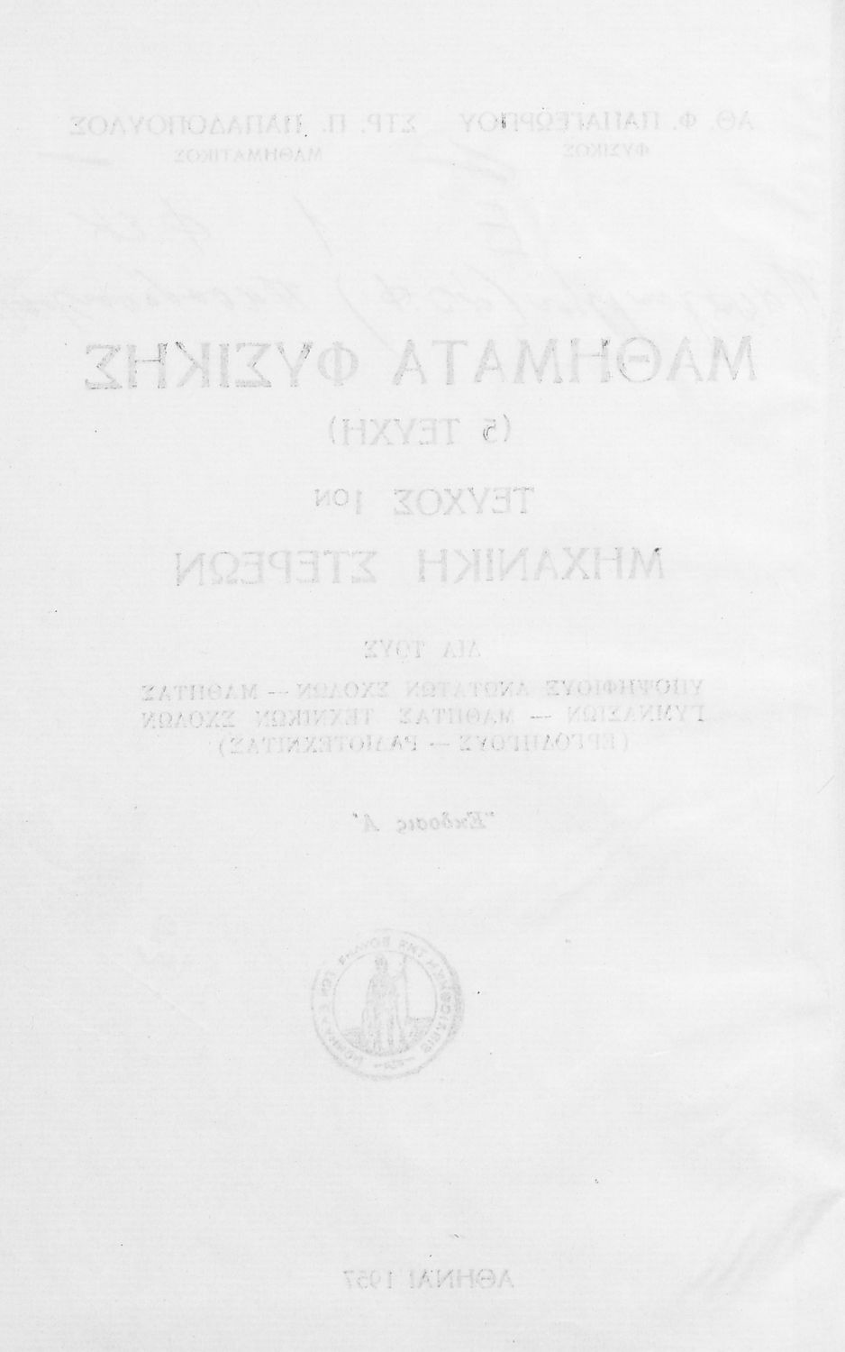 Μαθητικό βοήθημα Φυσικής για τους υποψήφιους Ανωτάτων Σχολών, τους μαθητές Γυμνασίων (κυρίως πρακτικής κατευθύνσεως) και δια τους μαθητάς μηχανοτεχνικών σχολών (εργοδηγούς και ραδιοτεχνίτες). Το βιβλίο περιέχει βασικές έννοιες της Μηχανικής των στερεών σωμάτων, κίνησης και ισορροπίας καθώς και στοιχεία Δυναμικής παρουσιάζοντας τους θεμελιώδεις νόμους μέσα από την κίνηση των στερεών σωμάτων.