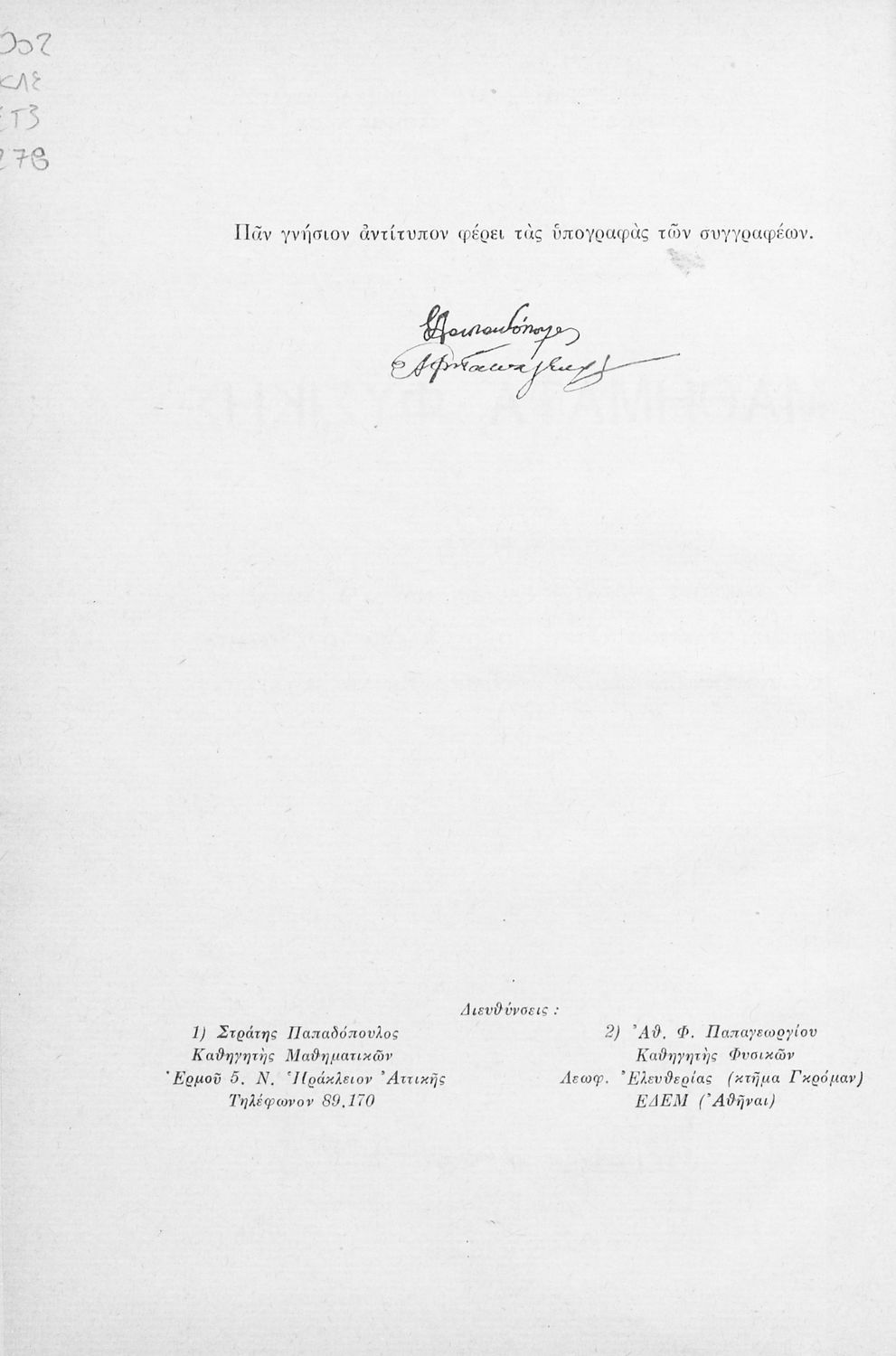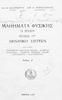 Βαθμίδα εκπαίδευσης: Δευτεροβάθμια Μάθημα: Φυσική Γλώσσα: Απλή καθαρεύουσα Παρουσίαση περιεχομένου: Μαθητικό βοήθημα Φυσικής για τους υποψήφιους Ανωτάτων Σχολών, τους μαθητές Γυμνασίων (κυρίως πρακτικής κατευθύνσεως) και δια τους μαθητάς μηχανοτεχνικών σχολών (εργοδηγούς και ραδιοτεχνίτες). Το βιβλίο περιέχει βασικές έννοιες της Μηχανικής των στερεών σωμάτων, κίνησης και ισορροπίας καθώς και στοιχεία Δυναμικής παρουσιάζοντας τους θεμελιώδεις νόμους μέσα από την κίνηση των στερεών σωμάτων. |