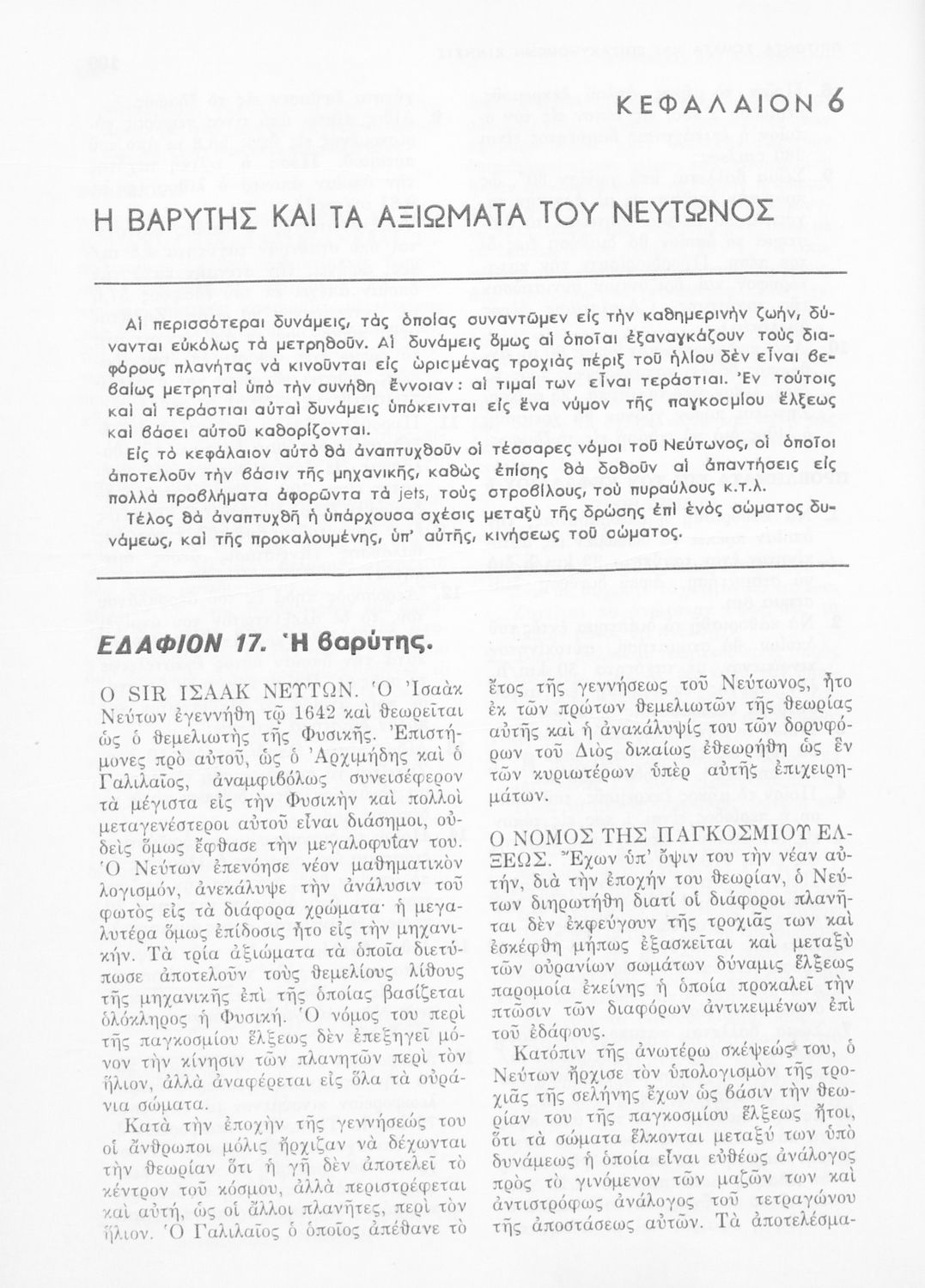 Παιδαγωγικό βοήθημα για την δευτεροβάθμια εκπαίδευση για το μάθημα της Φυσικής. Το εγχειρίδιο αποτελείται από 27 κεφάλαια, όπου αναπτύσσονται εκτενώς τα βασικότερα θέματα της επιστήμης της φυσικής. Ενδεικτικά αναφέρονται η μοριακή φυσική, τα ρευστά, η βαρύτητα, η θερμότητα, η μηχανική, η ακουστική, η οπτική, ο μαγνητισμός και ηλεκτρισμός, τα εναλλασσόμενα ρεύματα, η πυρηνική φυσική και άλλα.