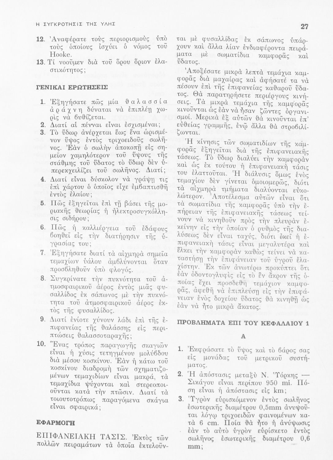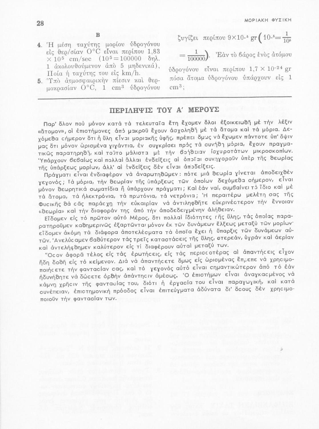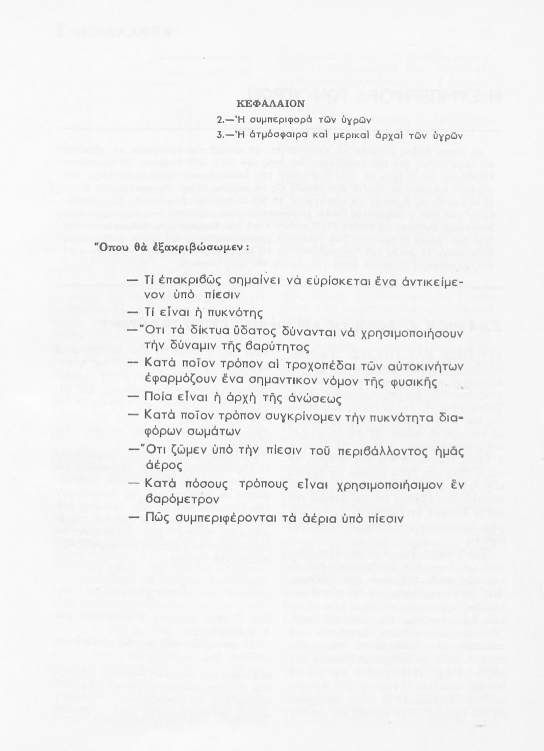 Παιδαγωγικό βοήθημα για την δευτεροβάθμια εκπαίδευση για το μάθημα της Φυσικής. Το εγχειρίδιο αποτελείται από 27 κεφάλαια, όπου αναπτύσσονται εκτενώς τα βασικότερα θέματα της επιστήμης της φυσικής. Ενδεικτικά αναφέρονται η μοριακή φυσική, τα ρευστά, η βαρύτητα, η θερμότητα, η μηχανική, η ακουστική, η οπτική, ο μαγνητισμός και ηλεκτρισμός, τα εναλλασσόμενα ρεύματα, η πυρηνική φυσική και άλλα.