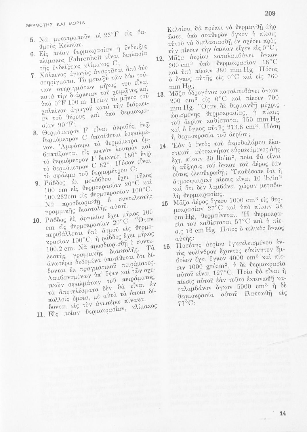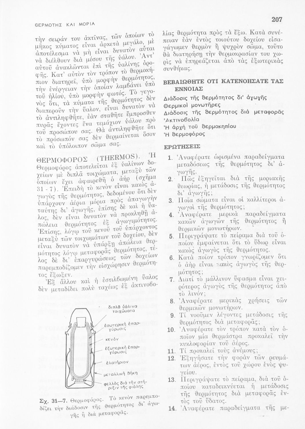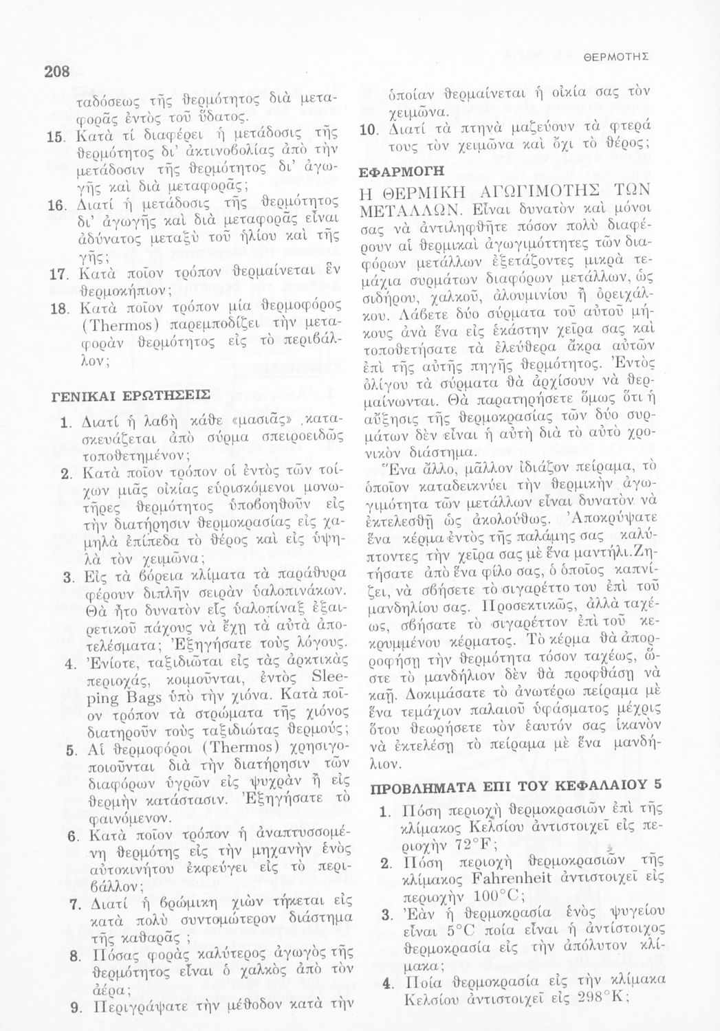 Παιδαγωγικό βοήθημα για την δευτεροβάθμια εκπαίδευση για το μάθημα της Φυσικής. Το εγχειρίδιο αποτελείται από 27 κεφάλαια, όπου αναπτύσσονται εκτενώς τα βασικότερα θέματα της επιστήμης της φυσικής. Ενδεικτικά αναφέρονται η μοριακή φυσική, τα ρευστά, η βαρύτητα, η θερμότητα, η μηχανική, η ακουστική, η οπτική, ο μαγνητισμός και ηλεκτρισμός, τα εναλλασσόμενα ρεύματα, η πυρηνική φυσική και άλλα.
