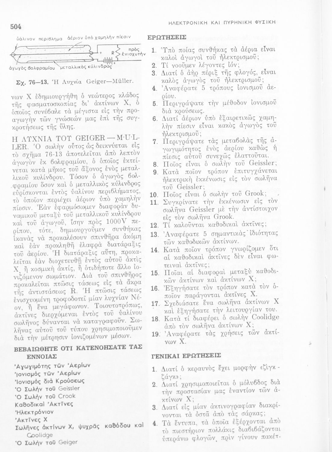 Παιδαγωγικό βοήθημα για την δευτεροβάθμια εκπαίδευση για το μάθημα της Φυσικής. Το εγχειρίδιο αποτελείται από 27 κεφάλαια, όπου αναπτύσσονται εκτενώς τα βασικότερα θέματα της επιστήμης της φυσικής. Ενδεικτικά αναφέρονται η μοριακή φυσική, τα ρευστά, η βαρύτητα, η θερμότητα, η μηχανική, η ακουστική, η οπτική, ο μαγνητισμός και ηλεκτρισμός, τα εναλλασσόμενα ρεύματα, η πυρηνική φυσική και άλλα.