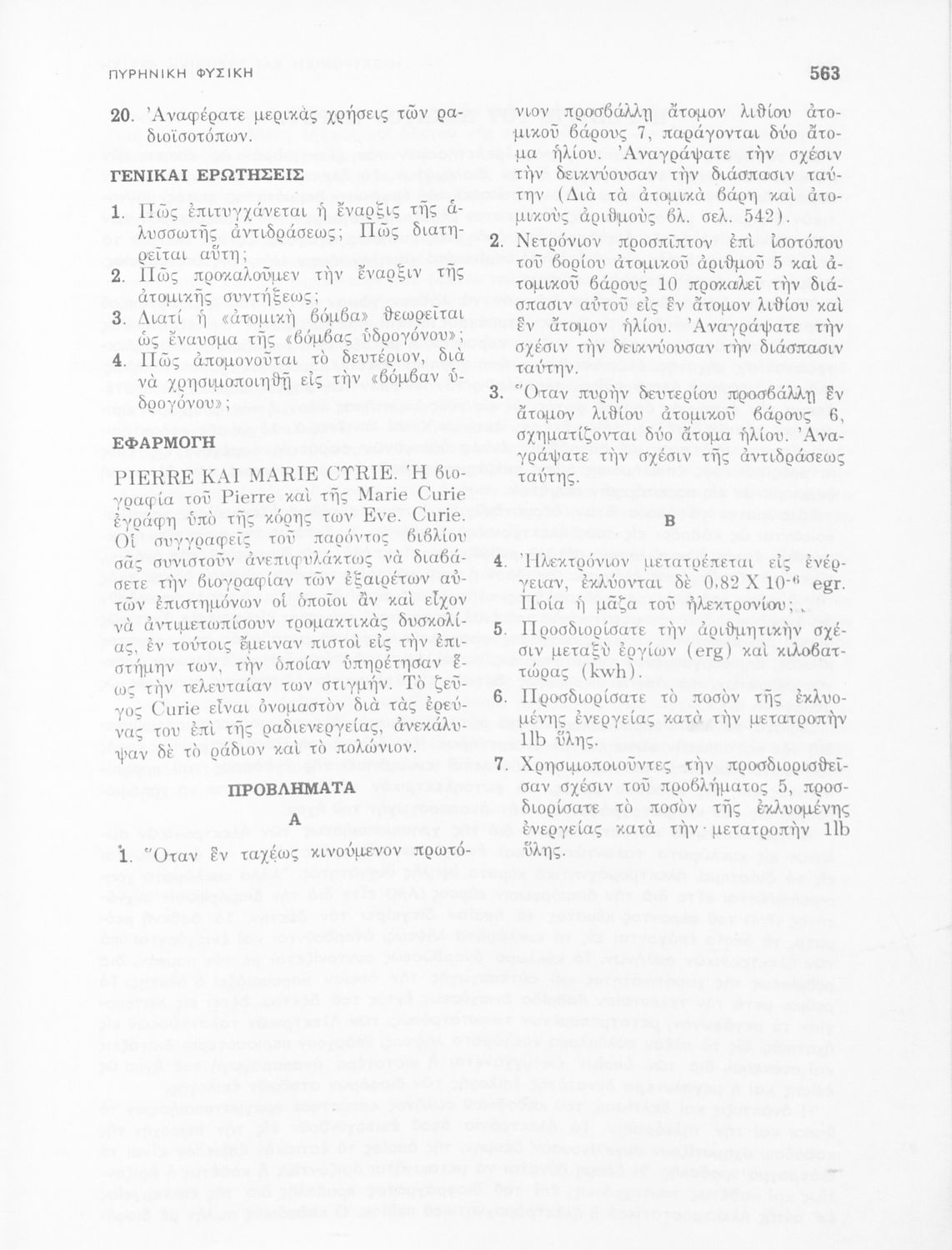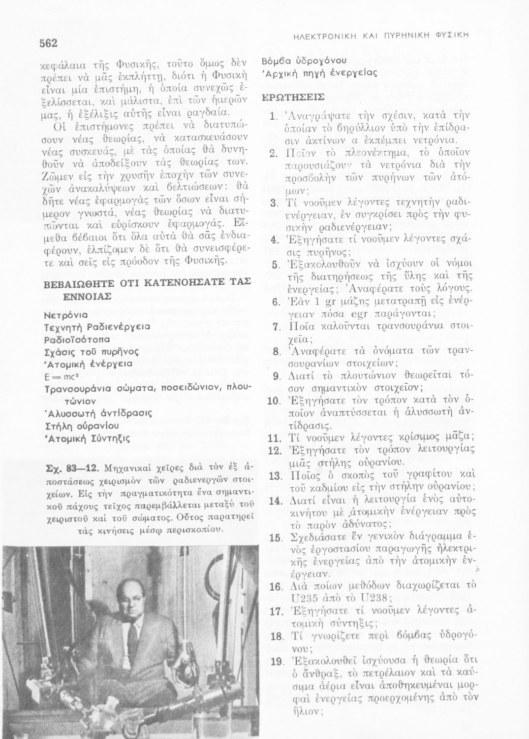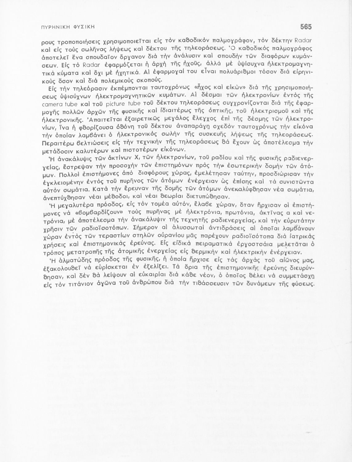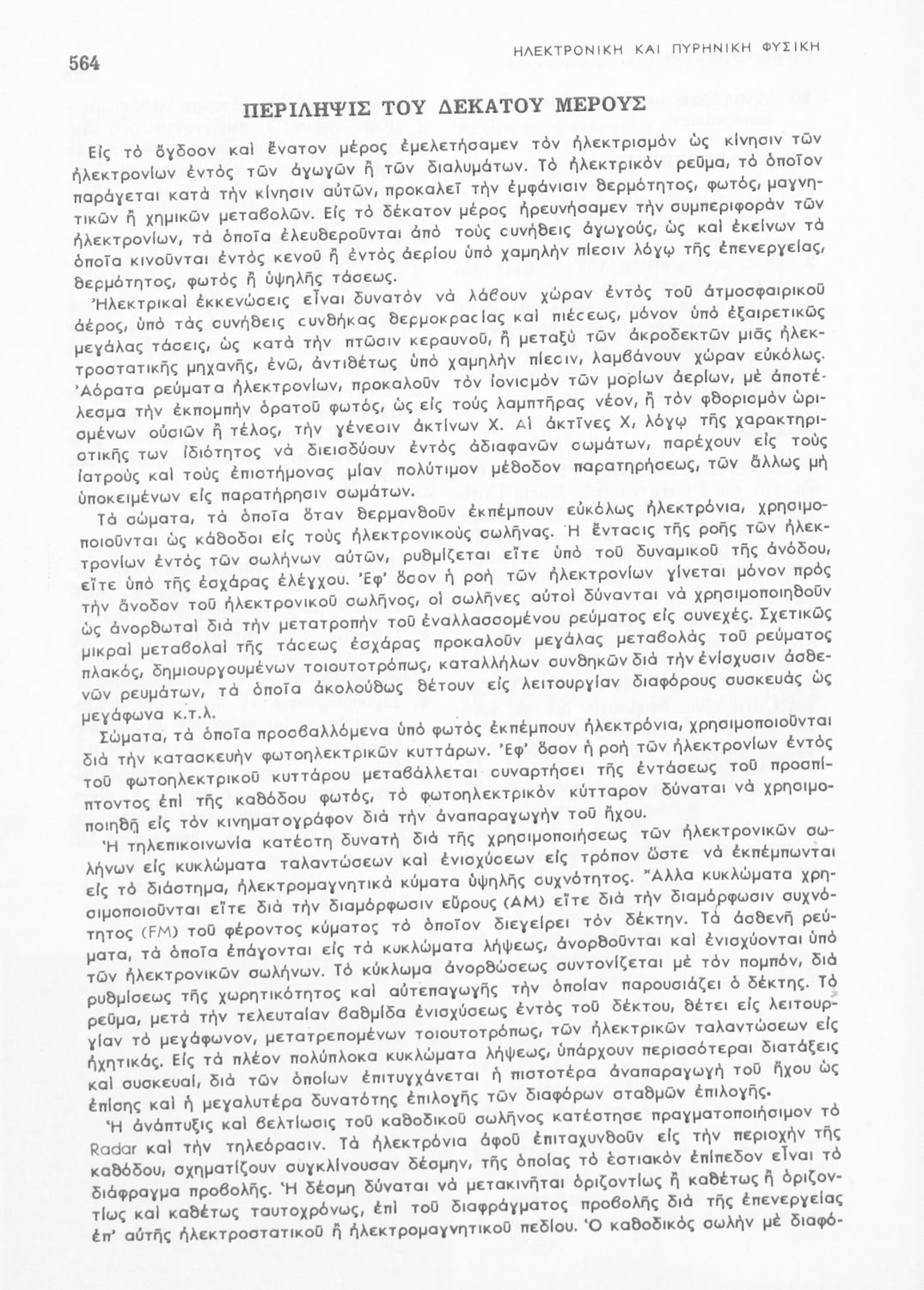 Παιδαγωγικό βοήθημα για την δευτεροβάθμια εκπαίδευση για το μάθημα της Φυσικής. Το εγχειρίδιο αποτελείται από 27 κεφάλαια, όπου αναπτύσσονται εκτενώς τα βασικότερα θέματα της επιστήμης της φυσικής. Ενδεικτικά αναφέρονται η μοριακή φυσική, τα ρευστά, η βαρύτητα, η θερμότητα, η μηχανική, η ακουστική, η οπτική, ο μαγνητισμός και ηλεκτρισμός, τα εναλλασσόμενα ρεύματα, η πυρηνική φυσική και άλλα.