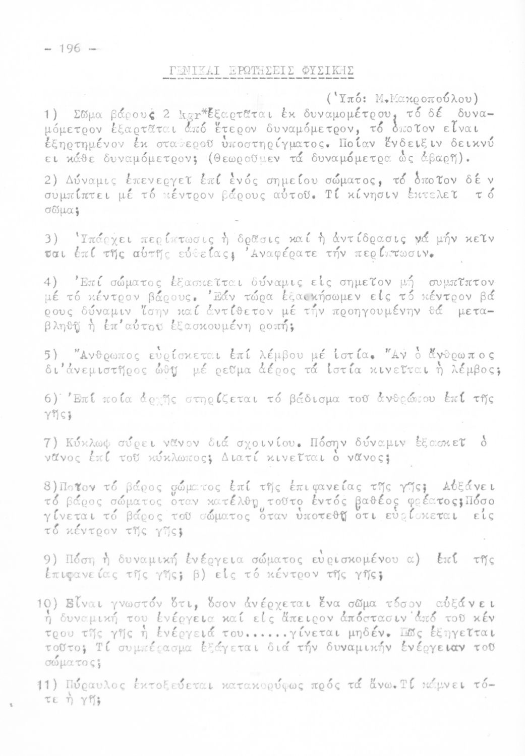 Βαθμίδα εκπαίδευσης: Δευτεροβάθμια Μάθημα: Φυσική Γλώσσα: Απλή καθαρεύουσα Παρουσίαση περιεχομένου: Μαθητικό βοήθημα Φυσικής για τους υποψήφιους των Ανωτάτων Σχολών που εστιάζει στα χαρακτηριστικά και τις ιδιότητες κίνησης των στερεών, των αερίων και των υγρών σωμάτων. |
