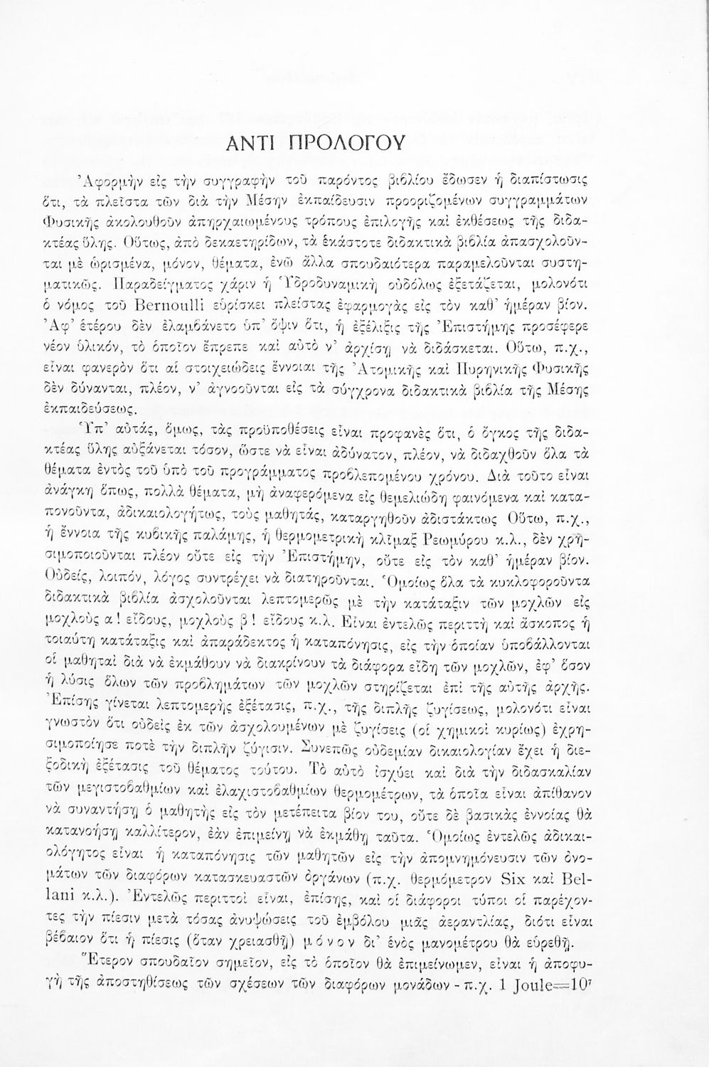Βαθμίδα εκπαίδευσης: Δευτεροβάθμια Τάξη: Γυμνάσιο Μάθημα: Φυσική Γλώσσα: Καθαρεύουσα Παρουσίαση περιεχομένου: Μαθητικό βοήθημα Φυσικής για τους μαθητές των Γυμνασίων και των υποψηφίων των εισαγωγικών εξετάσεων των Ανωτάτων Σχολών. Το βιβλίο περιέχει Το βιβλίο περιλαμβάνει στοιχεία Φυσικής στις θεματικές της μηχανικής, της θερμότητας της οπτικής και του ηλεκτρισμού. |