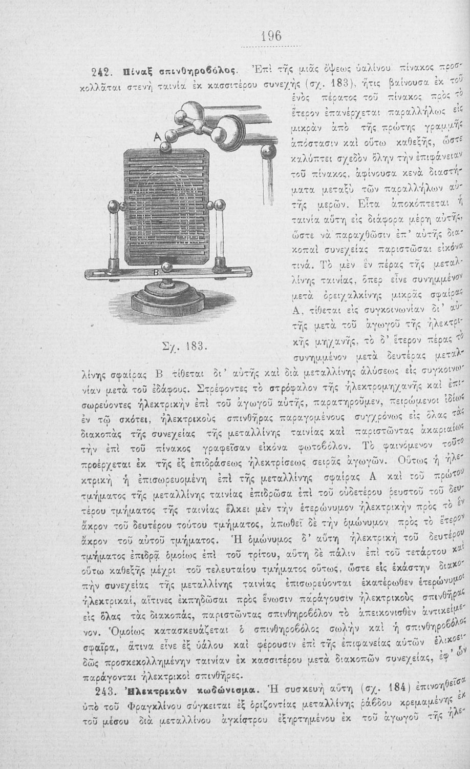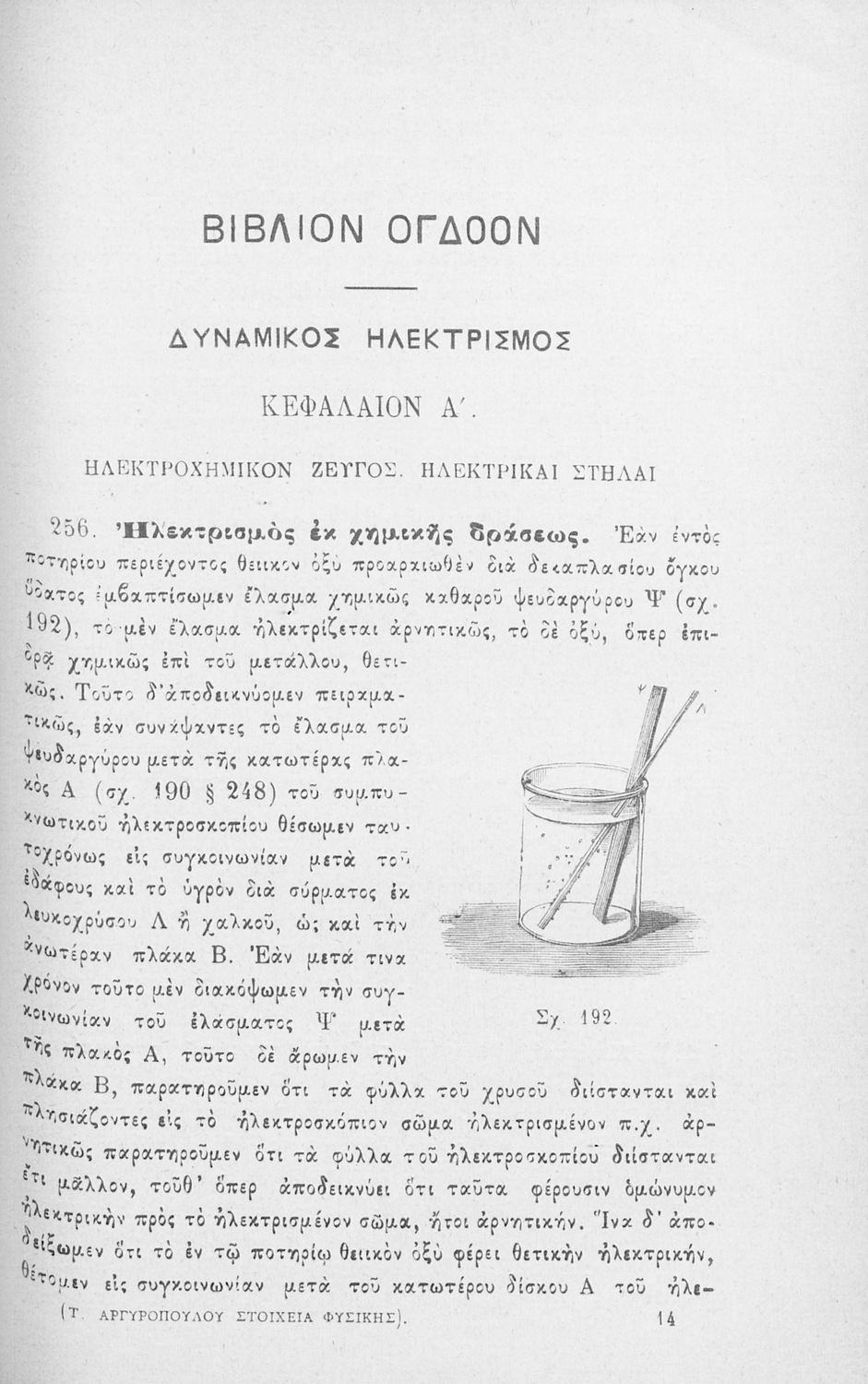 Τίτλος: Στοιχεία Φυσικής εγκριθέντα εν τω των διδακτικών βιβλίων διαγωνισμών όπως εισαχθώσιν επί τριετίαν ως μόνον διδακτικόν βιβλίον δια τους μαθητάς των Γυμνασίων, κατά τους ΑΜΒ ́ ΑΧΙ ΚΑΙ ΒΡΑ νόμους