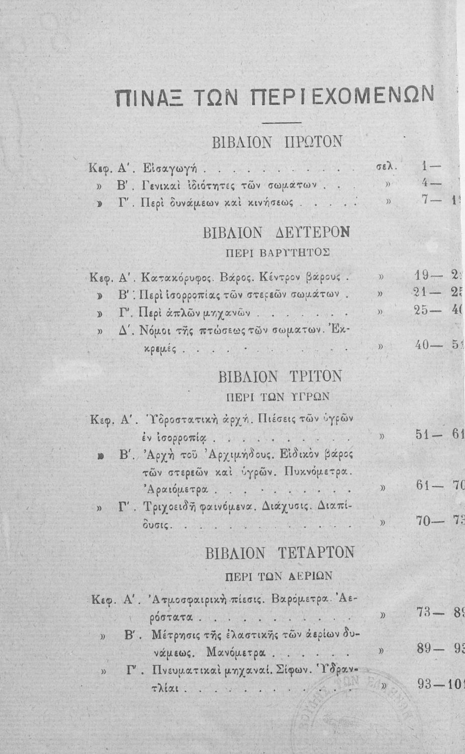 Στοιχεία Φυσικής εγκριθέντα εν τω των διδακτικών βιβλίων διαγωνισμών όπως εισαχθώσιν επί τριετίαν ως μόνον διδακτικόν βιβλίον δια τους μαθητάς των Γυμνασίων, κατά τους ΑΜΒ ́ ΑΧΙ ΚΑΙ ΒΡΑ νόμους