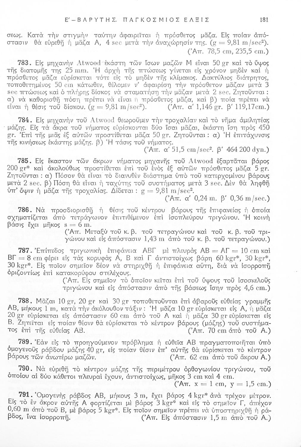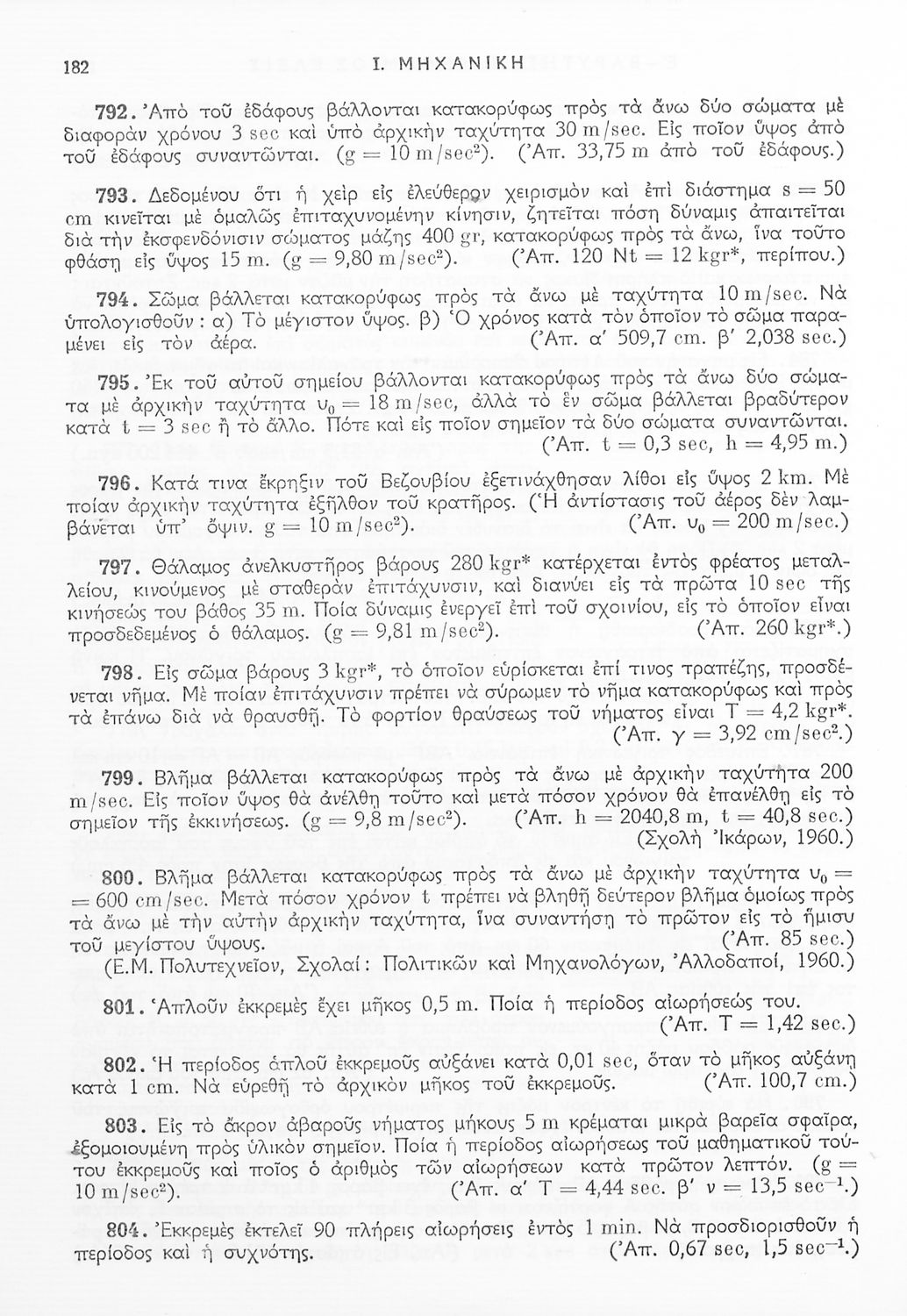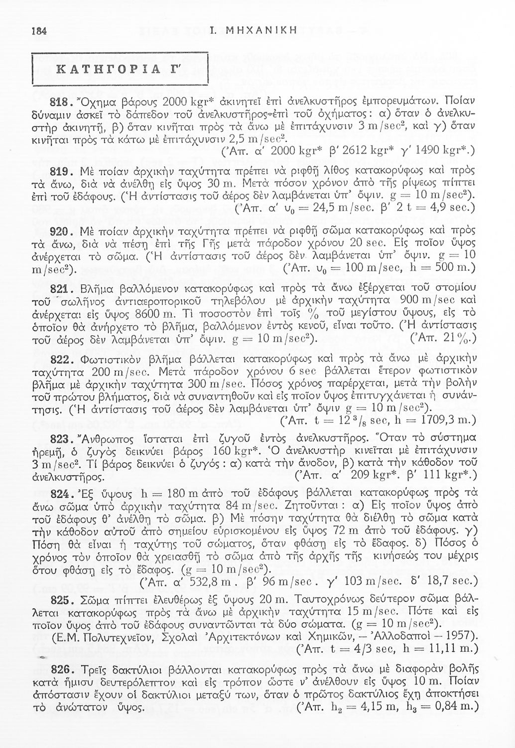 Ασκήσεις φυσικής τόμος πρώτος, μηχανική, θερμότητα, ακουστική, ταλαντώσεις και κύματα προς χρήσιν των μαθητών των Γυμνασίων, των τεχνικών σχολών και των υποψηφίων δια τας εισαγωγικάς εξετάσεις των ανωτάτων εκπαιδευτικών ιδρυμάτων