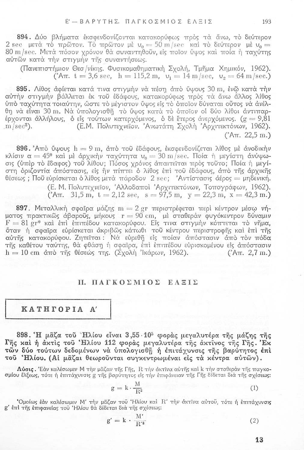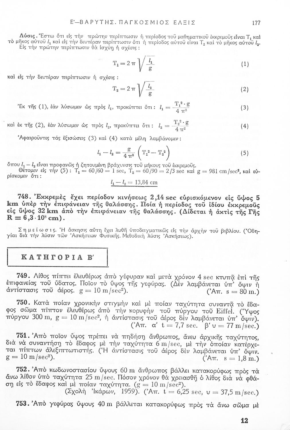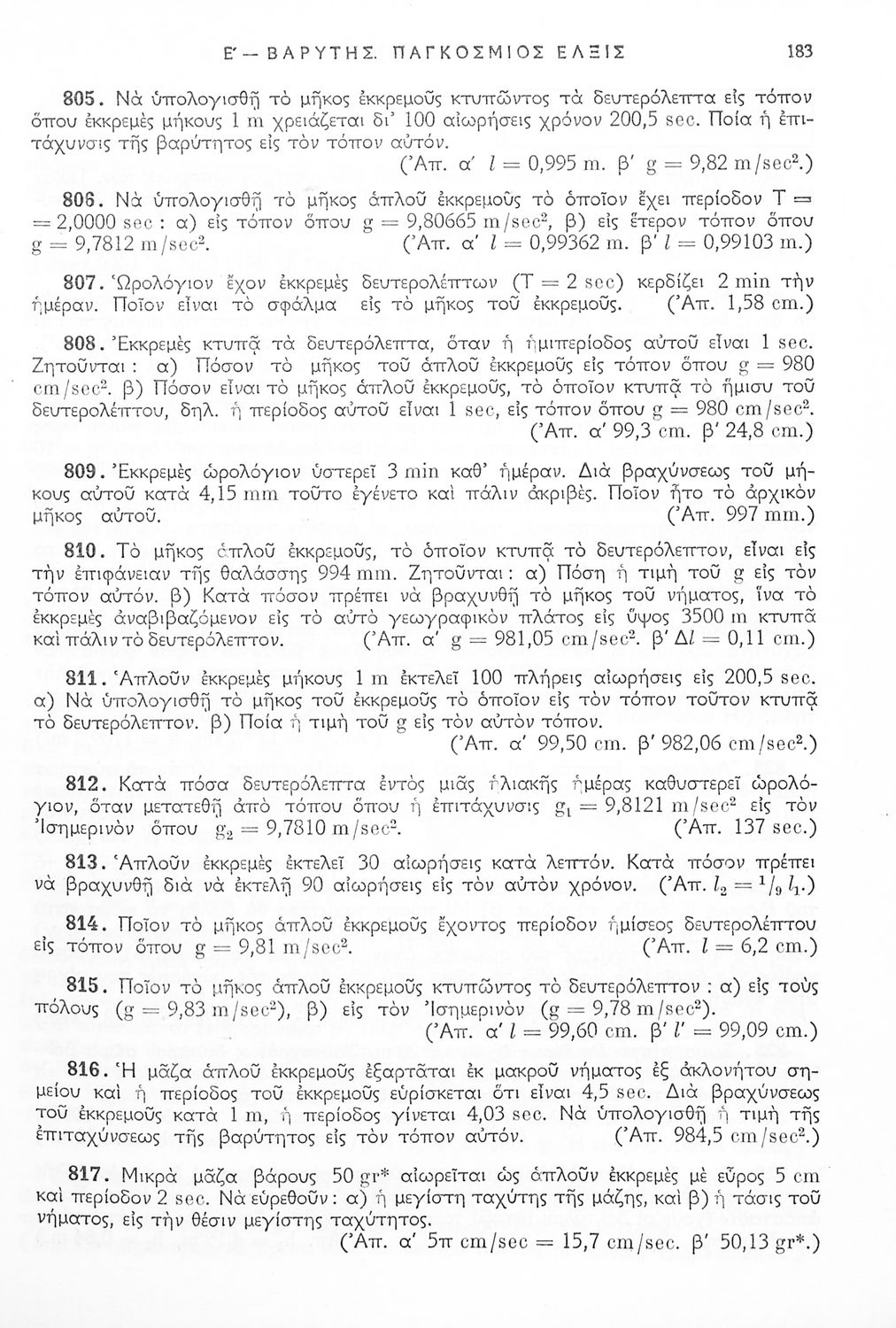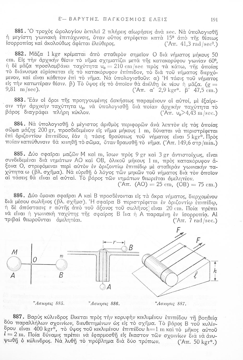 Ασκήσεις φυσικής τόμος πρώτος, μηχανική, θερμότητα, ακουστική, ταλαντώσεις και κύματα προς χρήσιν των μαθητών των Γυμνασίων, των τεχνικών σχολών και των υποψηφίων δια τας εισαγωγικάς εξετάσεις των ανωτάτων εκπαιδευτικών ιδρυμάτων