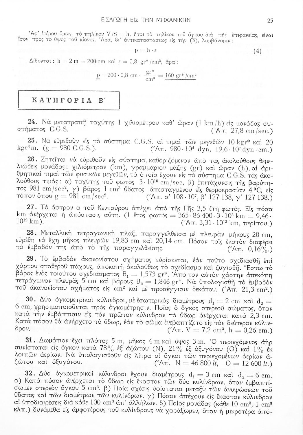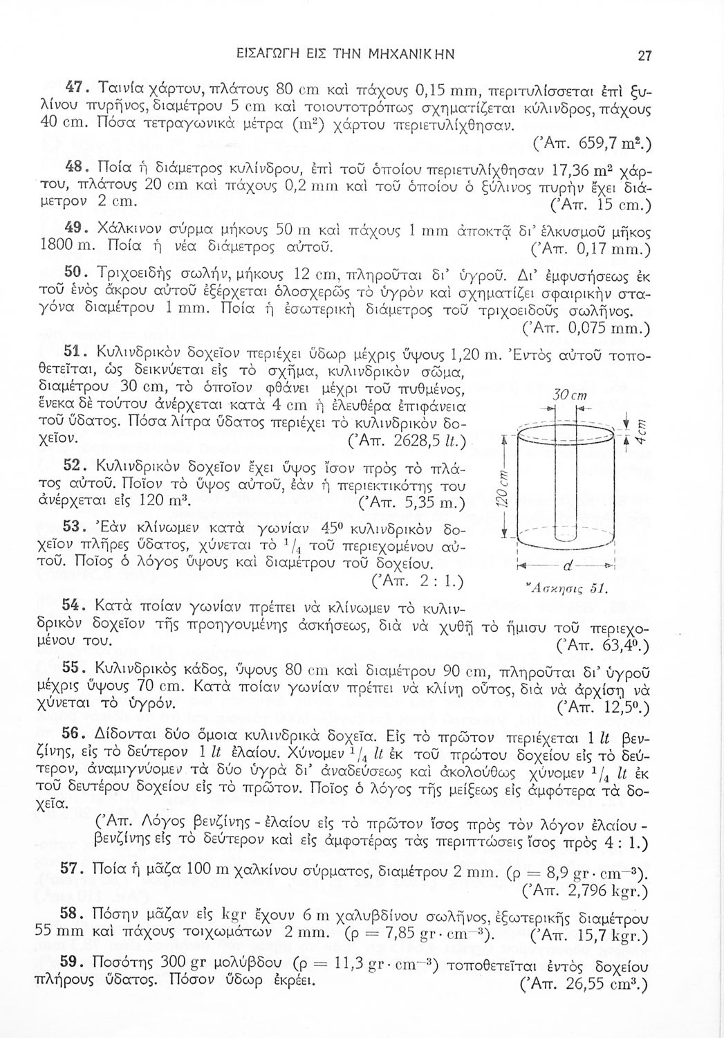 Ασκήσεις φυσικής τόμος πρώτος, μηχανική, θερμότητα, ακουστική, ταλαντώσεις και κύματα προς χρήσιν των μαθητών των Γυμνασίων, των τεχνικών σχολών και των υποψηφίων δια τας εισαγωγικάς εξετάσεις των ανωτάτων εκπαιδευτικών ιδρυμάτων