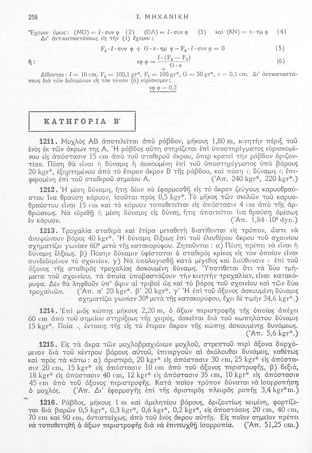 Ασκήσεις φυσικής τόμος πρώτος, μηχανική, θερμότητα, ακουστική, ταλαντώσεις και κύματα προς χρήσιν των μαθητών των Γυμνασίων, των τεχνικών σχολών και των υποψηφίων δια τας εισαγωγικάς εξετάσεις των ανωτάτων εκπαιδευτικών ιδρυμάτων