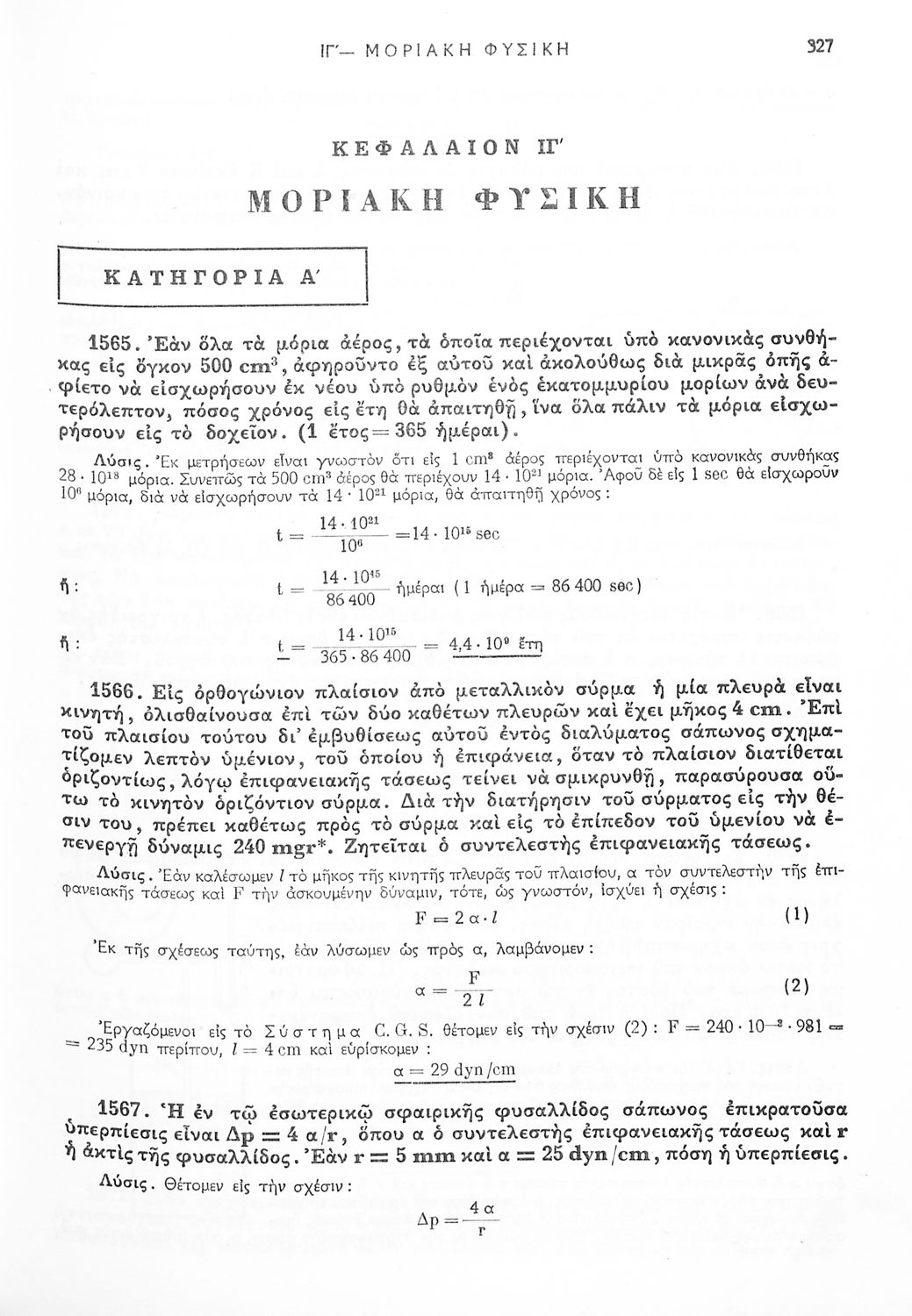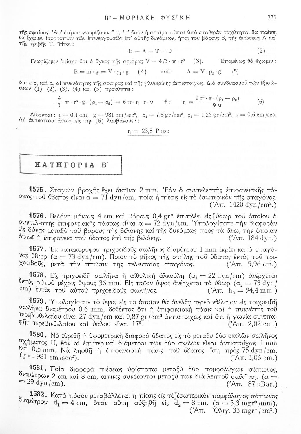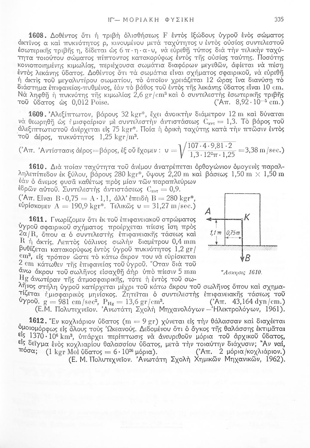 Ασκήσεις φυσικής τόμος πρώτος, μηχανική, θερμότητα, ακουστική, ταλαντώσεις και κύματα προς χρήσιν των μαθητών των Γυμνασίων, των τεχνικών σχολών και των υποψηφίων δια τας εισαγωγικάς εξετάσεις των ανωτάτων εκπαιδευτικών ιδρυμάτων