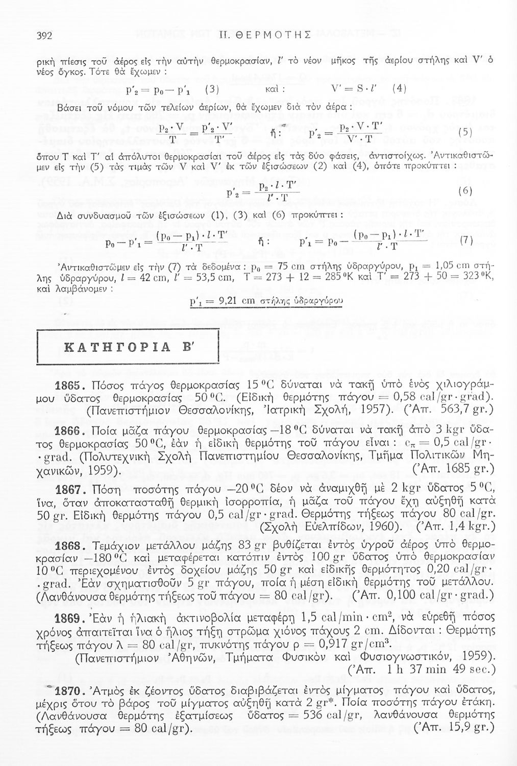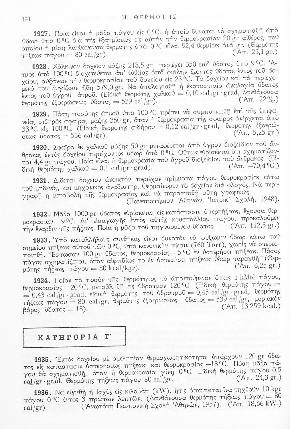 Ασκήσεις φυσικής τόμος πρώτος, μηχανική, θερμότητα, ακουστική, ταλαντώσεις και κύματα προς χρήσιν των μαθητών των Γυμνασίων, των τεχνικών σχολών και των υποψηφίων δια τας εισαγωγικάς εξετάσεις των ανωτάτων εκπαιδευτικών ιδρυμάτων