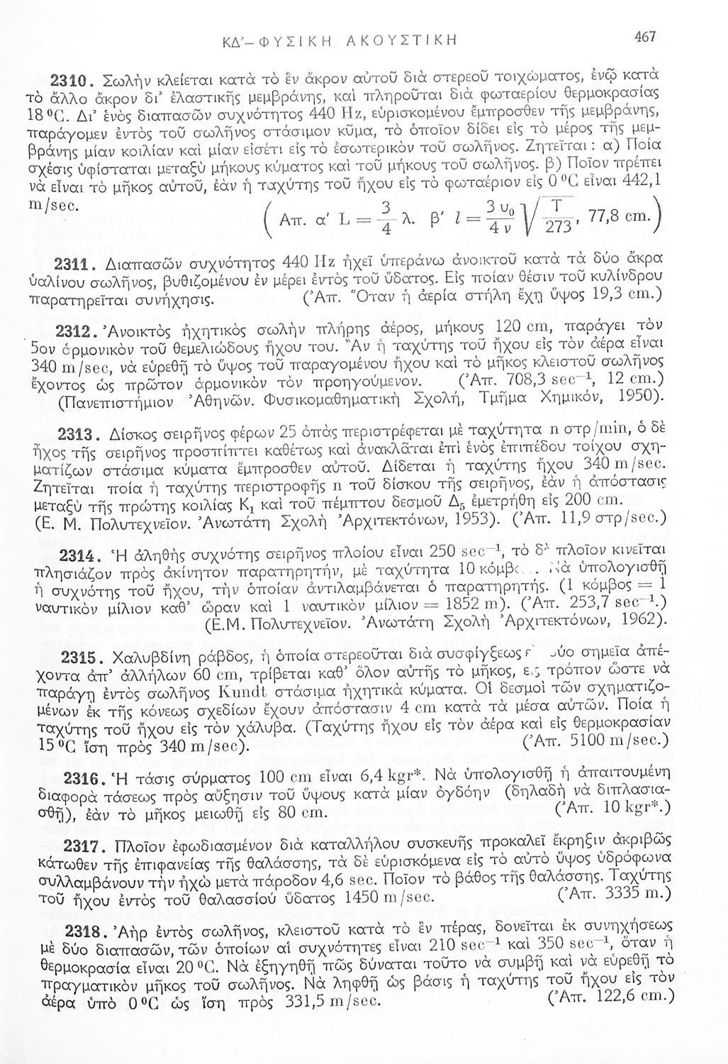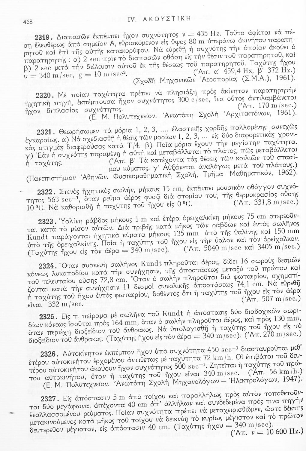Ασκήσεις φυσικής τόμος πρώτος, μηχανική, θερμότητα, ακουστική, ταλαντώσεις και κύματα προς χρήσιν των μαθητών των Γυμνασίων, των τεχνικών σχολών και των υποψηφίων δια τας εισαγωγικάς εξετάσεις των ανωτάτων εκπαιδευτικών ιδρυμάτων