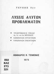 LDR 00973 2200181 4500 035 ## _a03-20638200 040 ## _aΒιβλιοθήκη της Βουλής των Ελλήνων 041 ## _ael 100 ## _aΛέανδρος Β. Τσιμένης 110 ## _a20638200 245 0# _aΛύσεις Άλυτων Προβλημάτων τριχοτόμησις γωνίας 4η, 5η, 6η μέθοδος, κανονικόν επτάγωνον κανονικόν εννεάγωνον 260 ## _aΑθήνα _c1975 300 ## _a16 520 ## _aΜαθητικό βοήθημα Τριγωνομετρίας που παρουσιάζει μεθόδους τριχοτόμησης γωνιών κανονικού επτάγωνου και κανονικού εννεαγώνου. 522 ## _aΕλλάδα 546 ## _aΚαθαρεύουσα 563 ## _aΜαλακό Εξώφυλλο 650 #4 _aΛύσεις προβλημάτων _aΤριγωνομετρία _aΤριχοτόμηση γωνιών