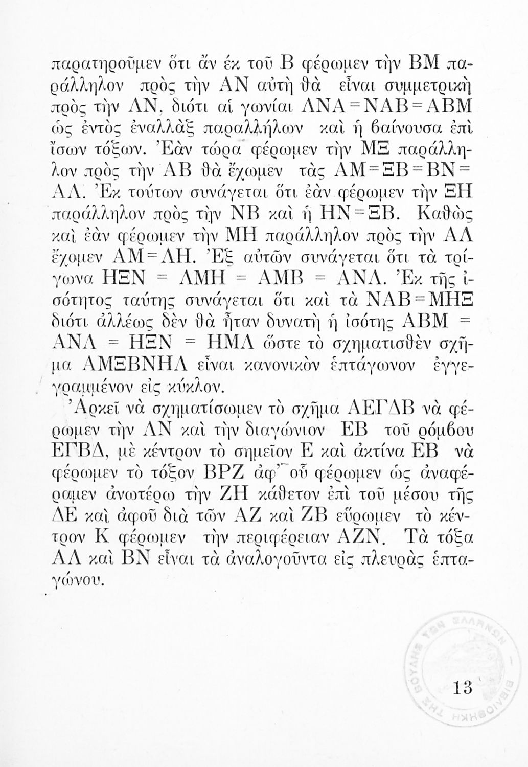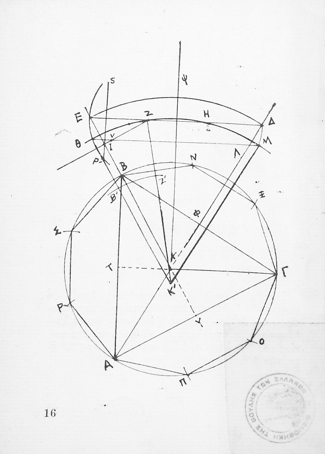 Μαθητικό βοήθημα Τριγωνομετρίας που παρουσιάζει μεθόδους τριχοτόμησης γωνιών κανονικού επτάγωνου και κανονικού εννεαγώνου.