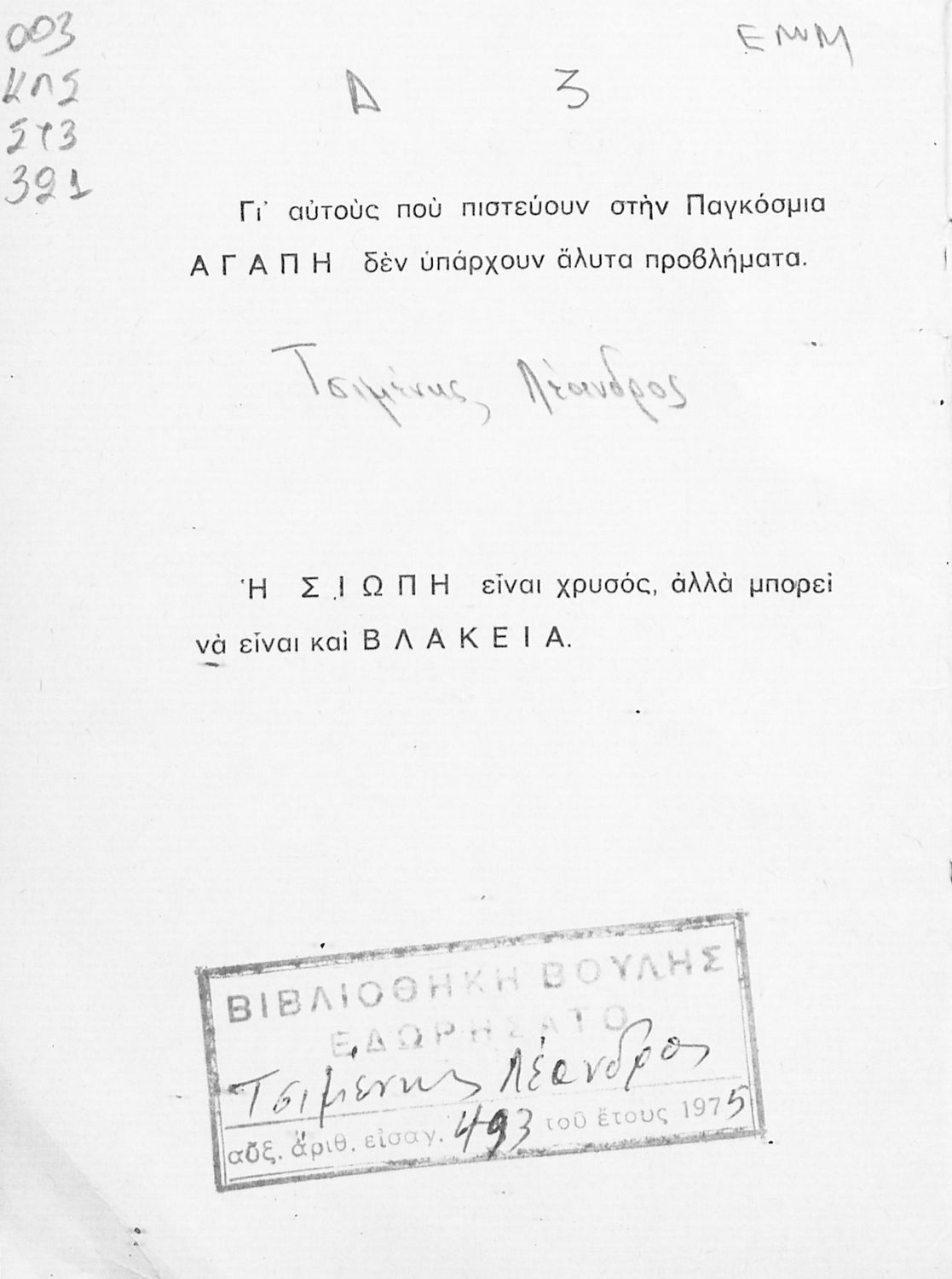 Έτος έκδοσης: 1975 Τόπος έκδοσης: Αθήνα |