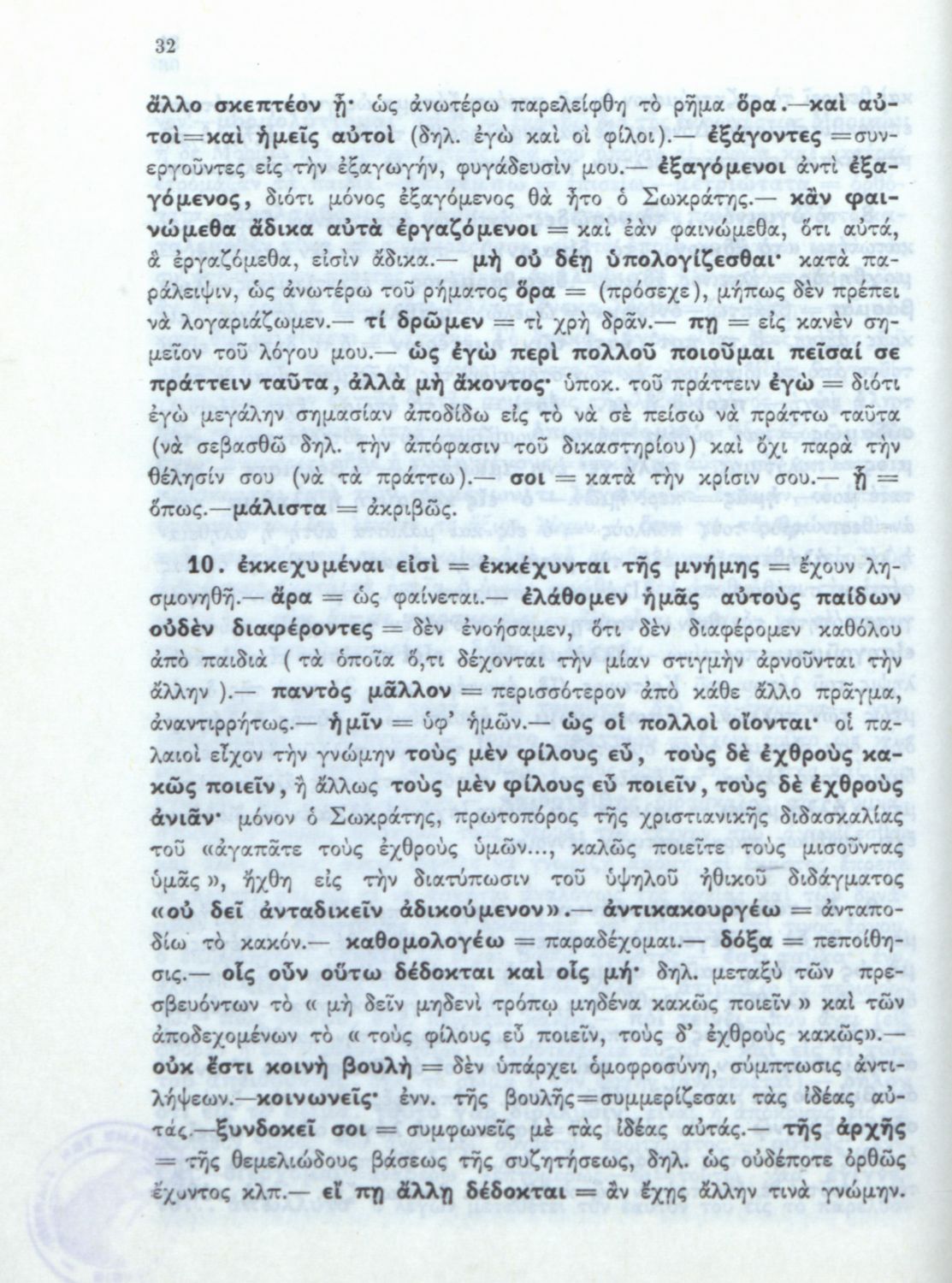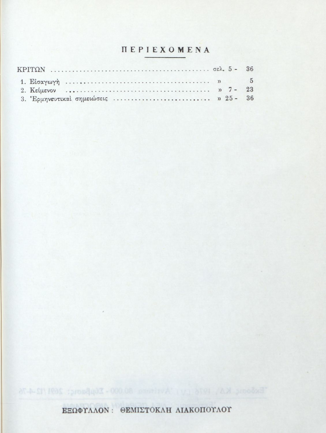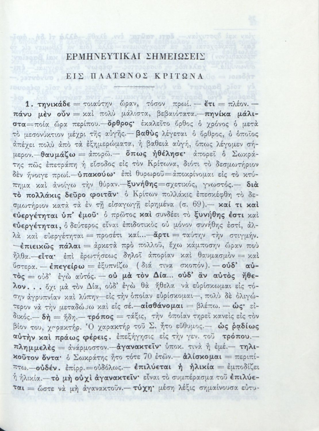 Σχολικό εγχειρίδιο Αρχαίων Ελληνικών για τους μαθητές της Ε΄ Γυμνασίου. Το βιβλίο περιλαμβάνει το έργο του Πλάτωνα, “Κρίτων” και το οποίο αναλύει γλωσσικά και ερμηνευτικά.