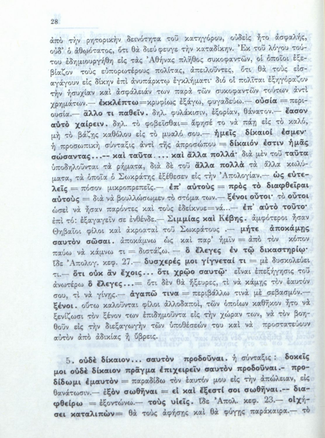 Σχολικό εγχειρίδιο Αρχαίων Ελληνικών της Ε' Τάξης Γυμνασίων Παλαιού Τύπου & ΣΤ΄ Τάξης Νέου Τύπου. Το βιβλίο περιέχει τα έργα του Πλάτωνα “Απολογία Σωκράτους” και “Κρίτων” από το πρωτότυπο. Στο δεύτερο μέρος ...