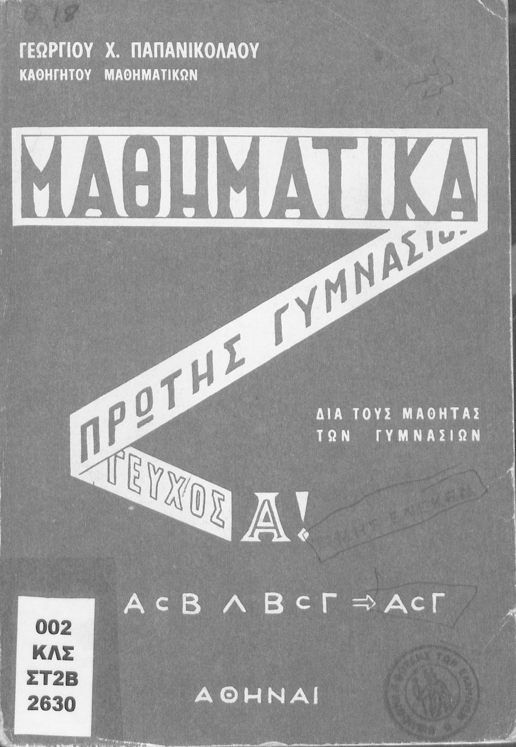 Κωδικός αναγνώρισης: 03-20643902 Τίτλος: Μαθηματικά πρώτης Γυμνασίου τεύχος A΄ Συγγραφέας: Γεώργιος Χ. Παπανικολάου Μέγεθος και υπόστρωμα: Μαθητικό βοήθημα, μαλακό εξώφυλλο, 320 σελίδες. |