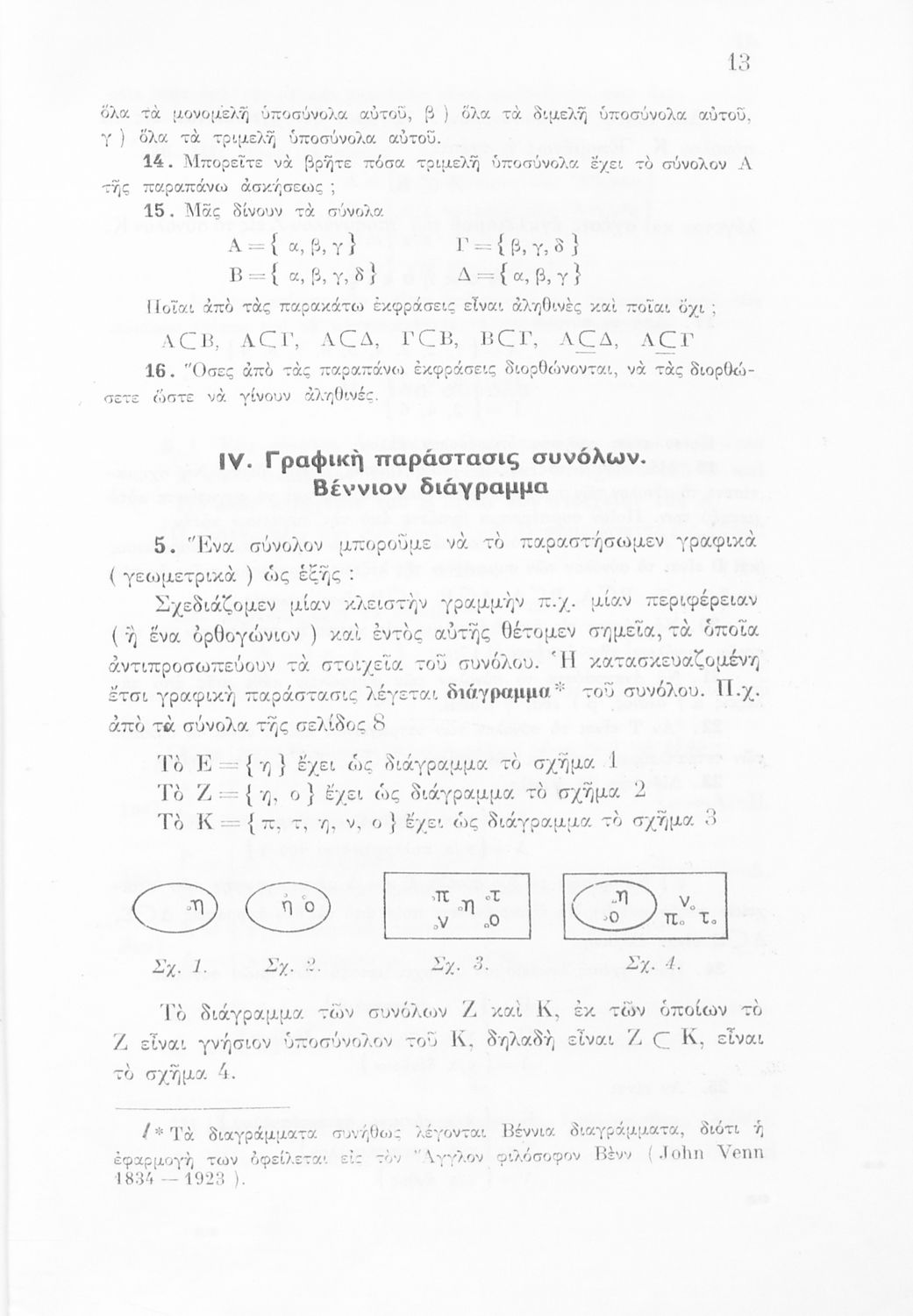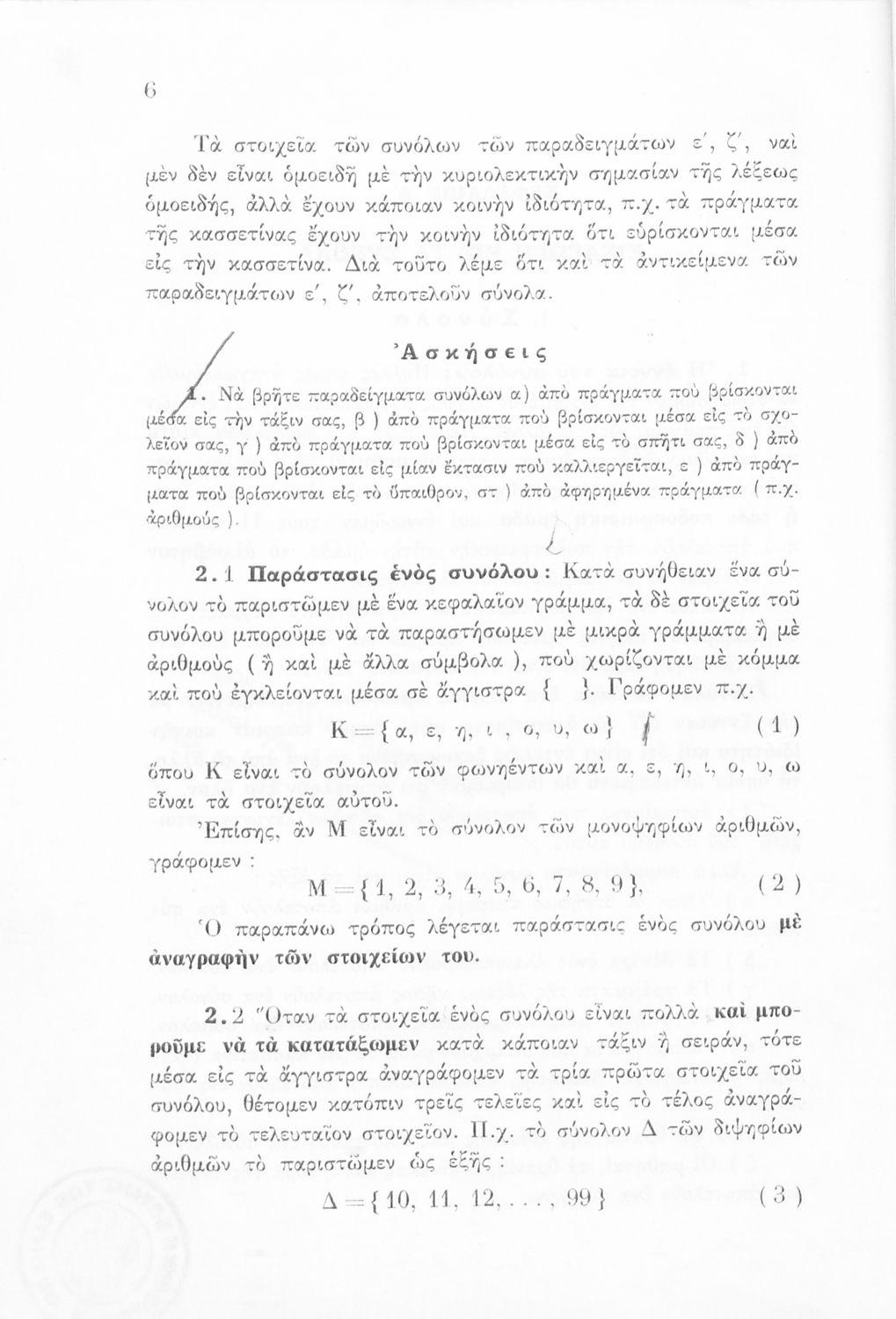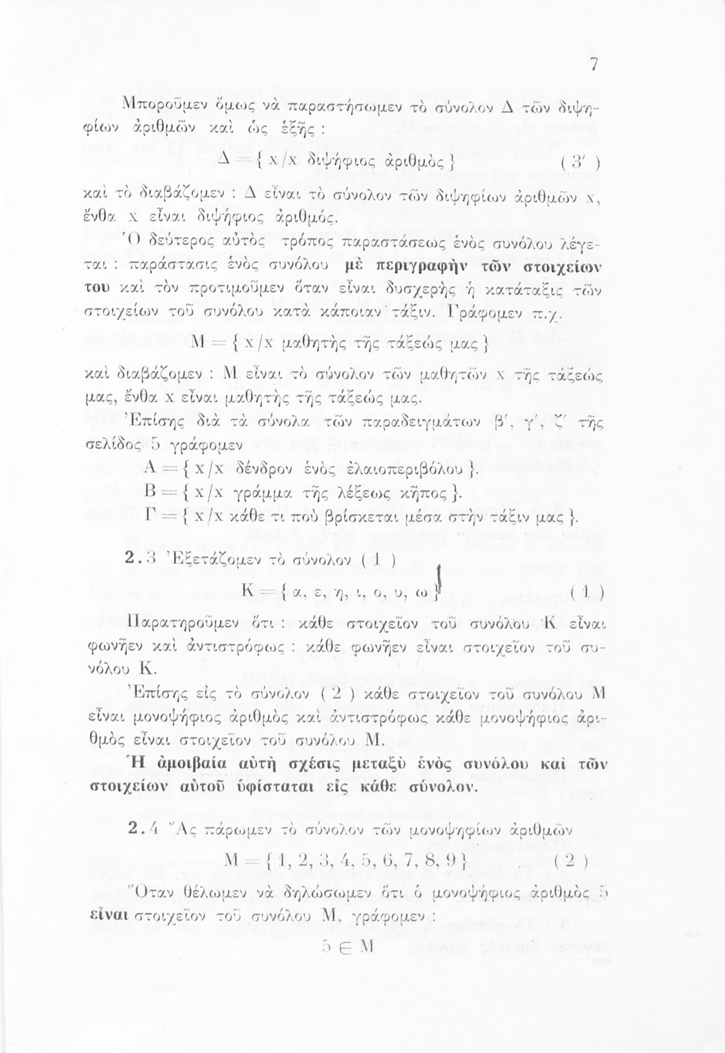 Βαθμίδα εκπαίδευσης: Δευτεροβάθμια Τάξη: Α' Γυμνασίου Μάθημα: Μαθηματικά Γλώσσα: Καθαρεύουσα Παρουσίαση περιεχομένου: Μαθητικό βοήθημα Μαθηματικών Α' Γυμνασίου που περιέχει άλγεβρα με έμφαση στις αριθμητικές πράξεις με ακέραιους, δεκαδικούς και κλάσματα, και εισαγωγή στη θεωρία των συνόλων. |