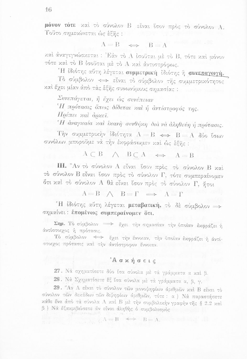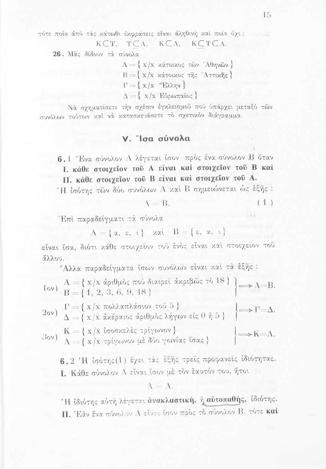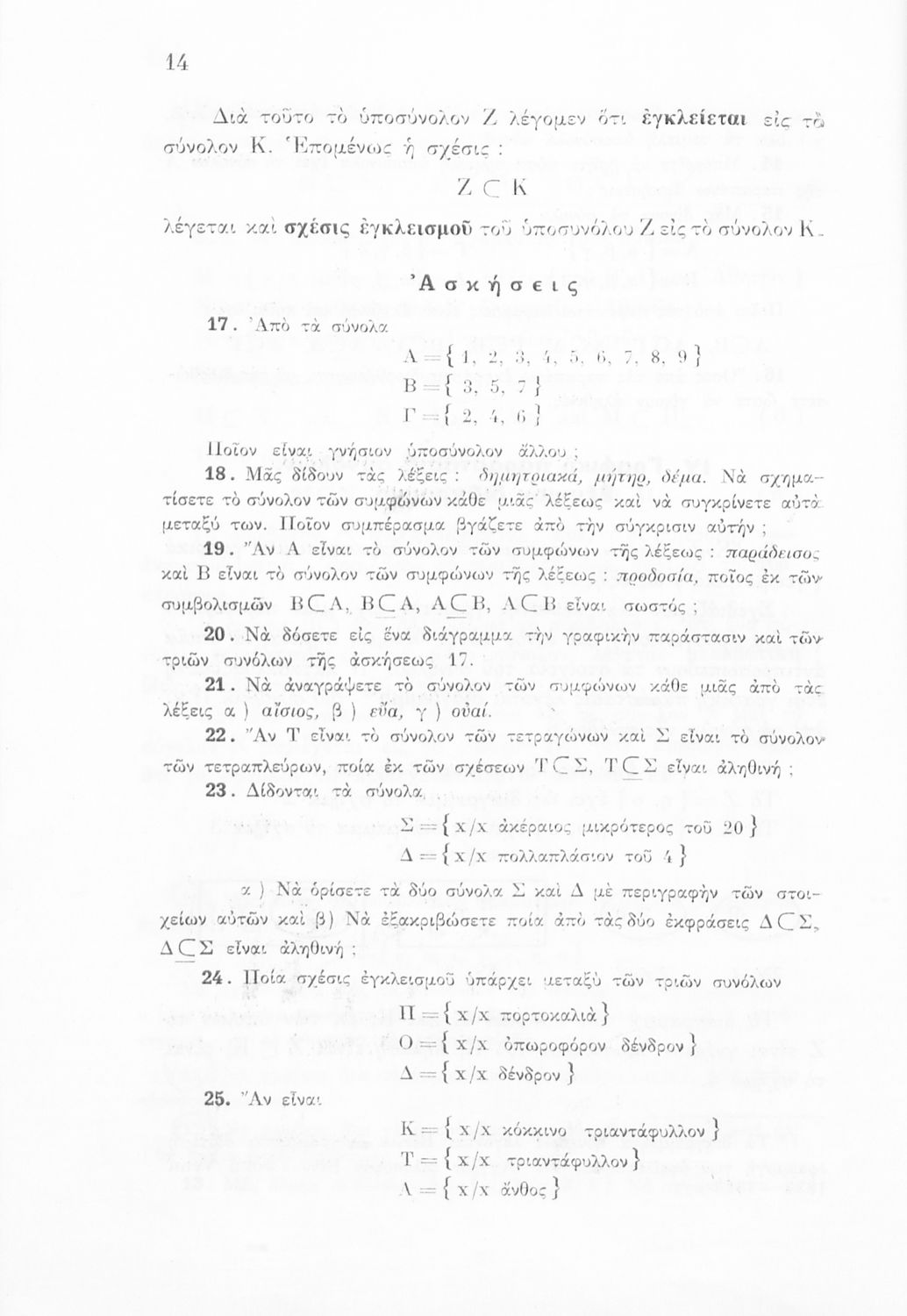 Βαθμίδα εκπαίδευσης: Δευτεροβάθμια Τάξη: Α' Γυμνασίου Μάθημα: Μαθηματικά Γλώσσα: Καθαρεύουσα Παρουσίαση περιεχομένου: Μαθητικό βοήθημα Μαθηματικών Α' Γυμνασίου που περιέχει άλγεβρα με έμφαση στις αριθμητικές πράξεις με ακέραιους, δεκαδικούς και κλάσματα, και εισαγωγή στη θεωρία των συνόλων. |
