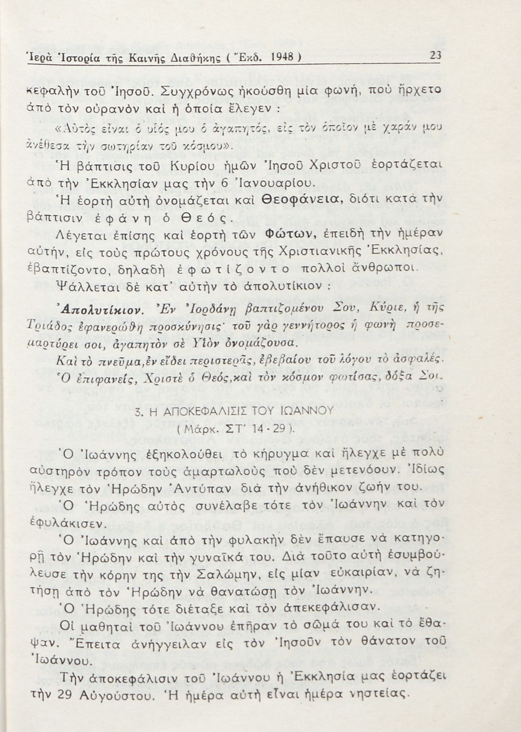 Ιερά Ιστορία της Καινής Διαθήκης, δια την Β΄ τάξιν των Γυμνασίων