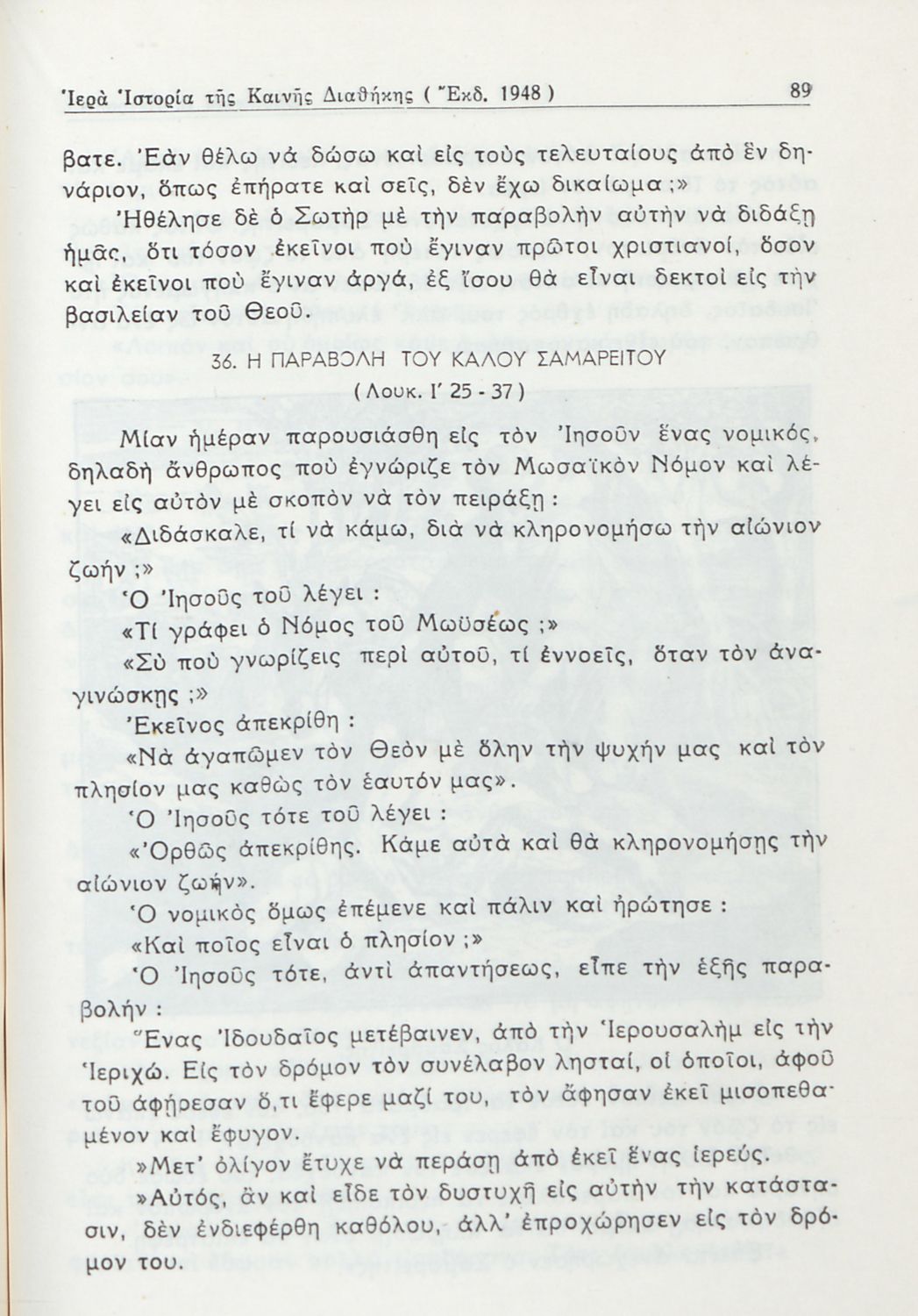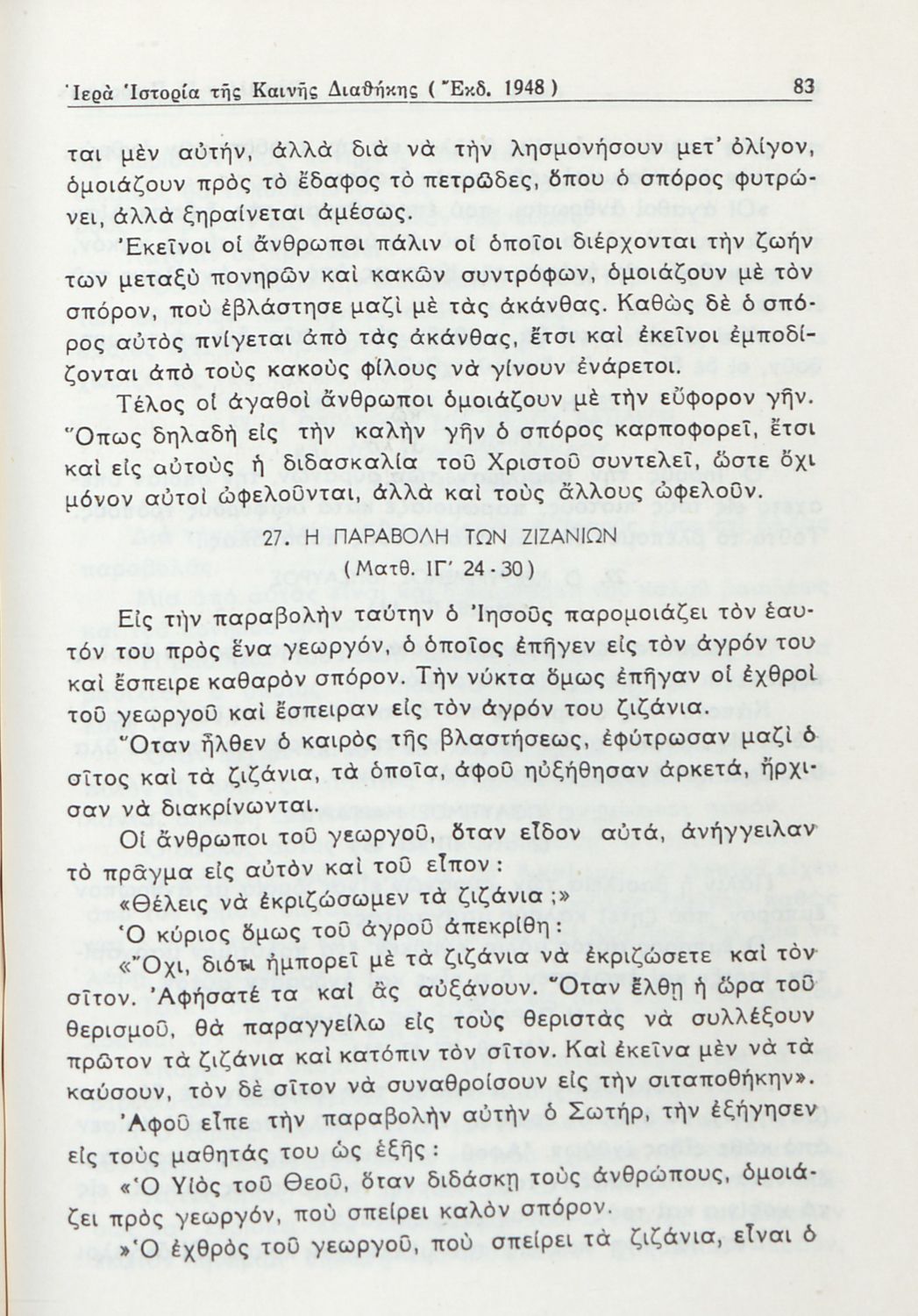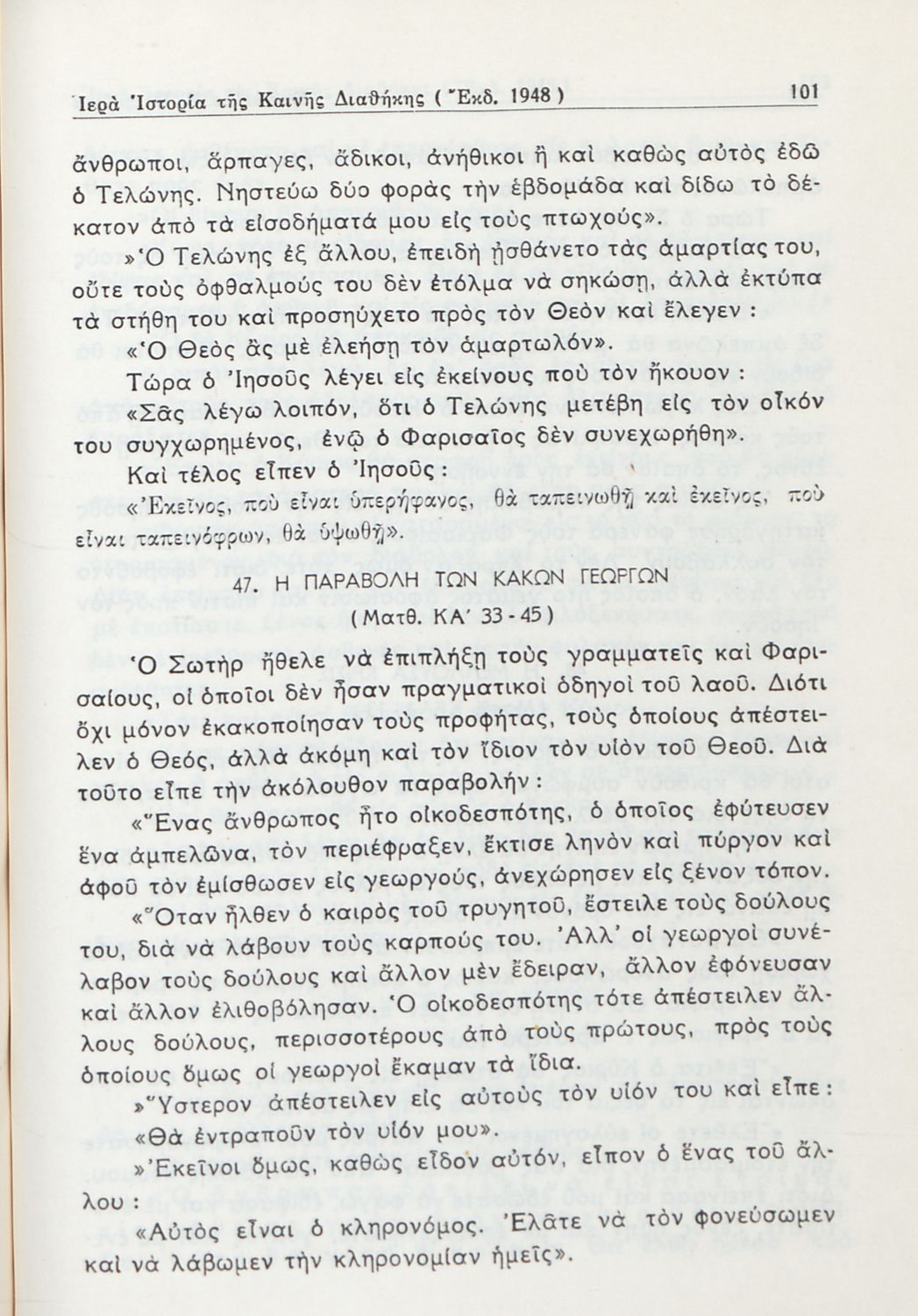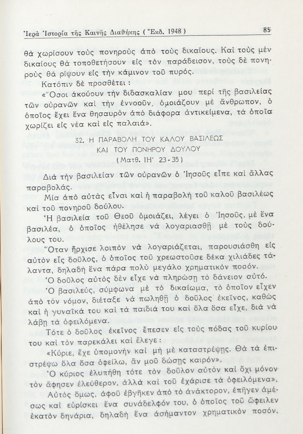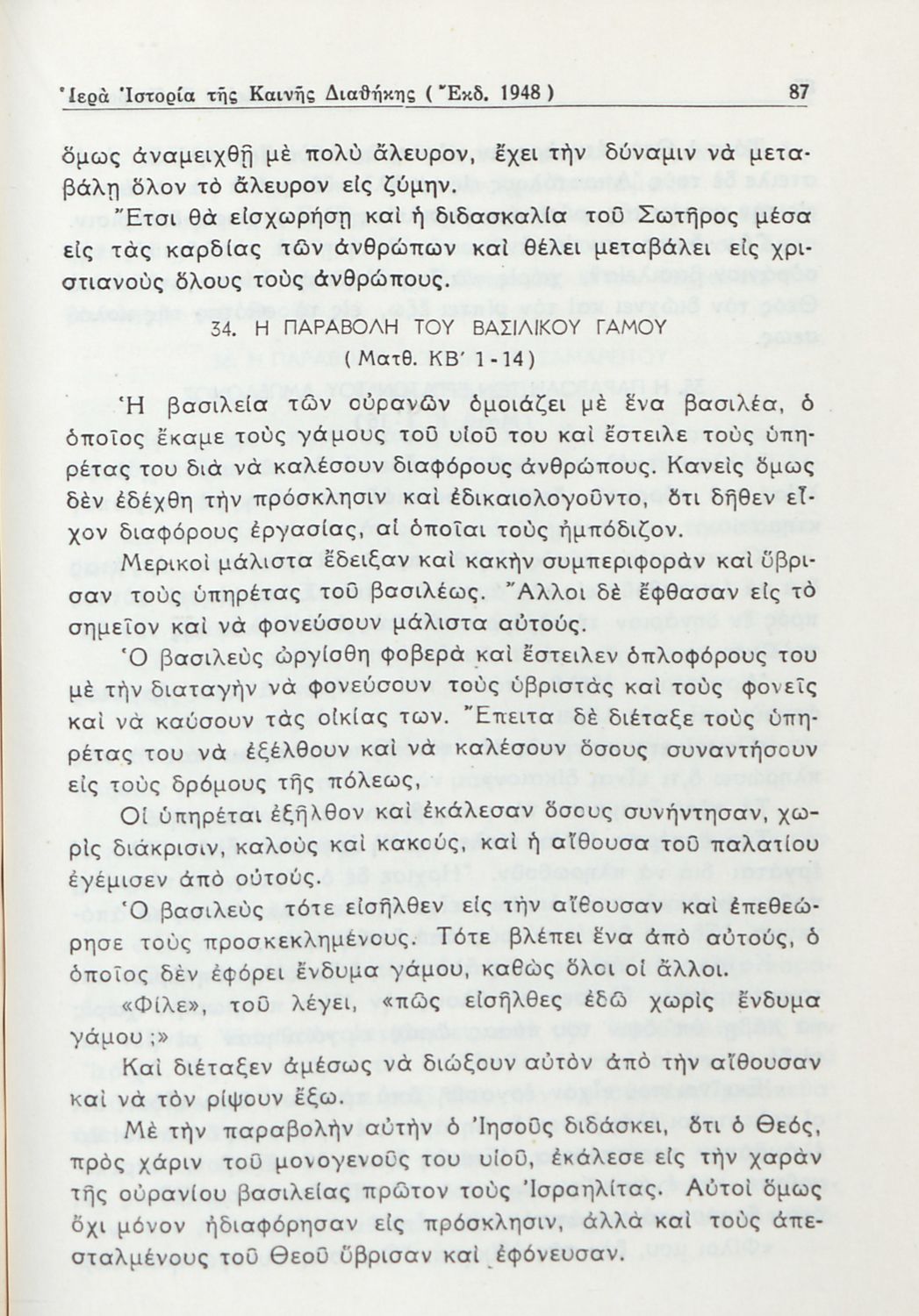 Βαθμίδα εκπαίδευσης: Δευτεροβάθμια Τάξη: Β' Γυμνασίου Μάθημα: Θρησκευτικά Γλώσσα: Απλή καθαρεύουσα Παρουσίαση περιεχομένου: Σχολικό εγχειρίδιο Θρησκευτικών Β΄ Γυμνασίου που συνιστά μία εξιστόρηση της Καινής Διαθήκης από τη γέννηση της Θεοτόκου ως την ανάληψη του Χριστού . |