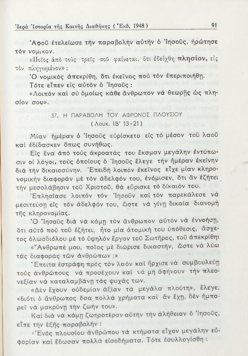 LDR 01091 2200193 4500 035 ## _a03-20644171 040 ## _aΒιβλιοθήκη της Βουλής των Ελλήνων 041 ## _ael 100 ## _aΒασίλειος Ε. Πετρούνιας 110 ## _a20644171 245 0# _aΙερά Ιστορία της Καινής Διαθήκης, δια την Β΄ τάξιν των Γυμνασίων 260 ## _aΑθήνα _bΟργανισμός Εκδόσεως Σχολικών Βιβλίων _c1948 300 ## _a136 _bΣκίτσα (ασπρόμαυρα) 520 ## _aΣχολικό εγχειρίδιο Θρησκευτικών Β΄ Γυμνασίου που συνιστά μία εξιστόρηση της Καινής Διαθήκης από τη γέννηση της Θεοτόκου ως την ανάληψη του Χριστού . 521 ## _aΒ' Γυμνασίου 522 ## _aΕλλάδα 546 ## _aΑπλή καθαρεύουσα 563 ## _aΜαλακό Εξώφυλλο 650 #4 _aΘαύματα _aΙωάννης ο Πρόδρομος _aΠαραβολές _aΣταύρωση