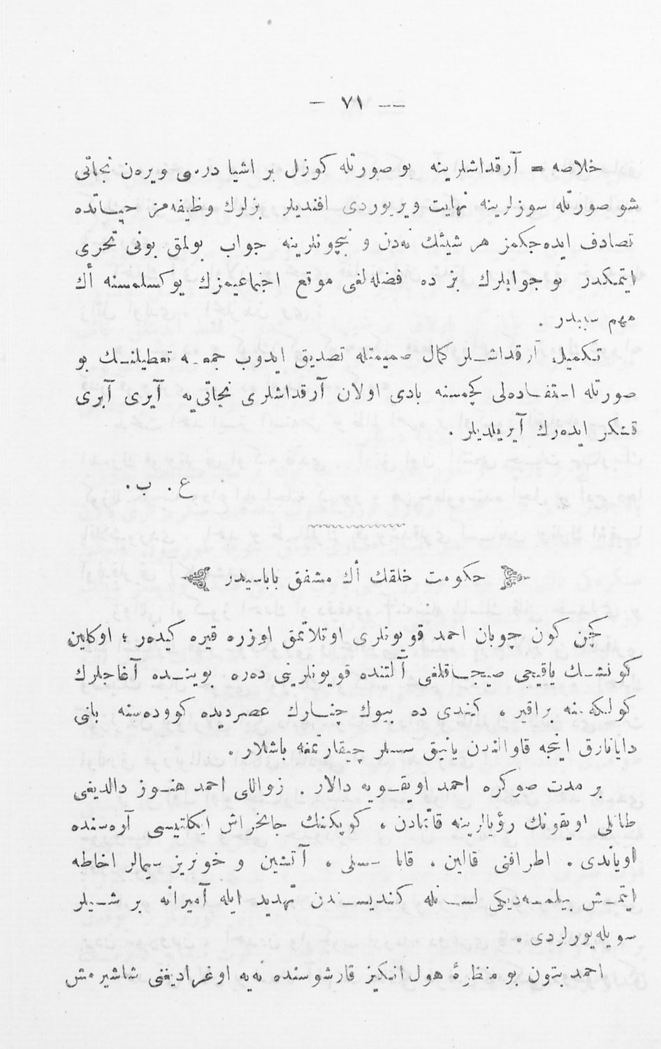Κωδικός αναγνώρισης: 03-20644178 Τίτλος: Αναγνωστικόν του Κράτους ΣΤ΄ Τάξεως (...εις τουρκικήν γλώσσαν...δια τους μαθητάς...των Οθωμανικών Δημοτικών Σχολείων του Κράτους) Μέγεθος και υπόστρωμα: Σχολικό εγχειρίδιο, σκληρό εξώφυλλο, 126 σελίδες. |