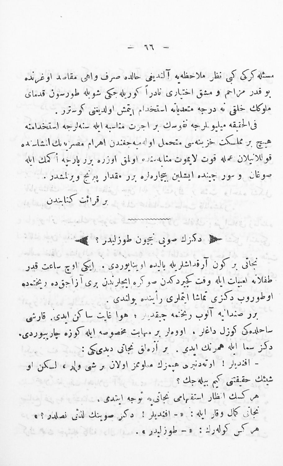 Αναγνωστικό για τους μαθητές της Δ' τάξης των Μουσουλμανικών Σχολείων που περιέχει κείμενα στα τουρκικά από την κοινωνική και την οικογενειακή ζωή και το φυσικό περιβάλλον.
