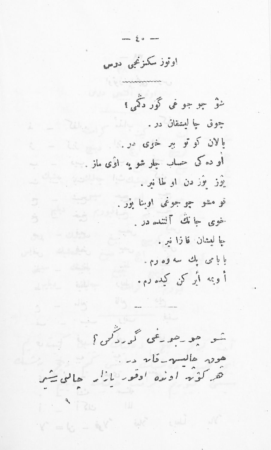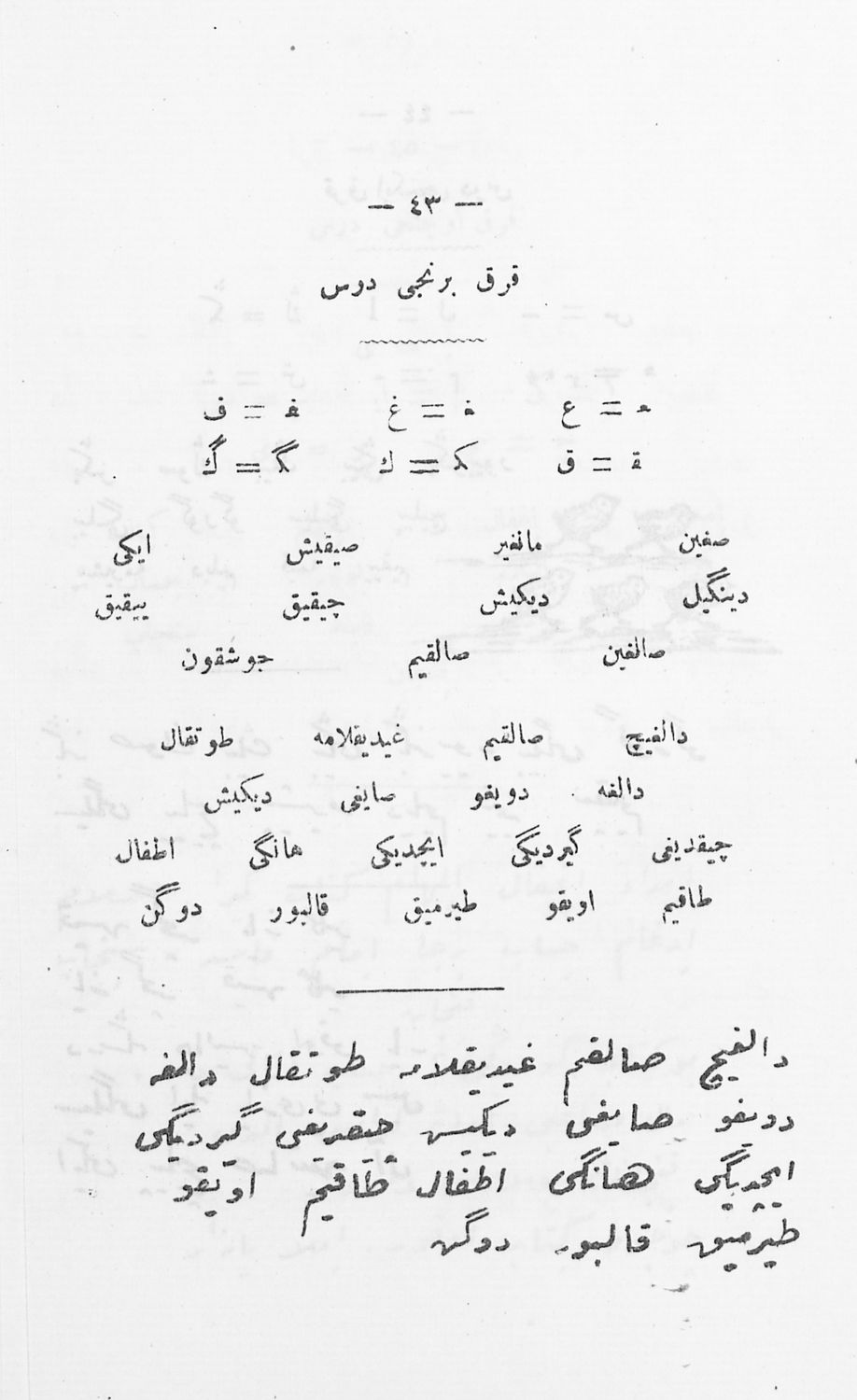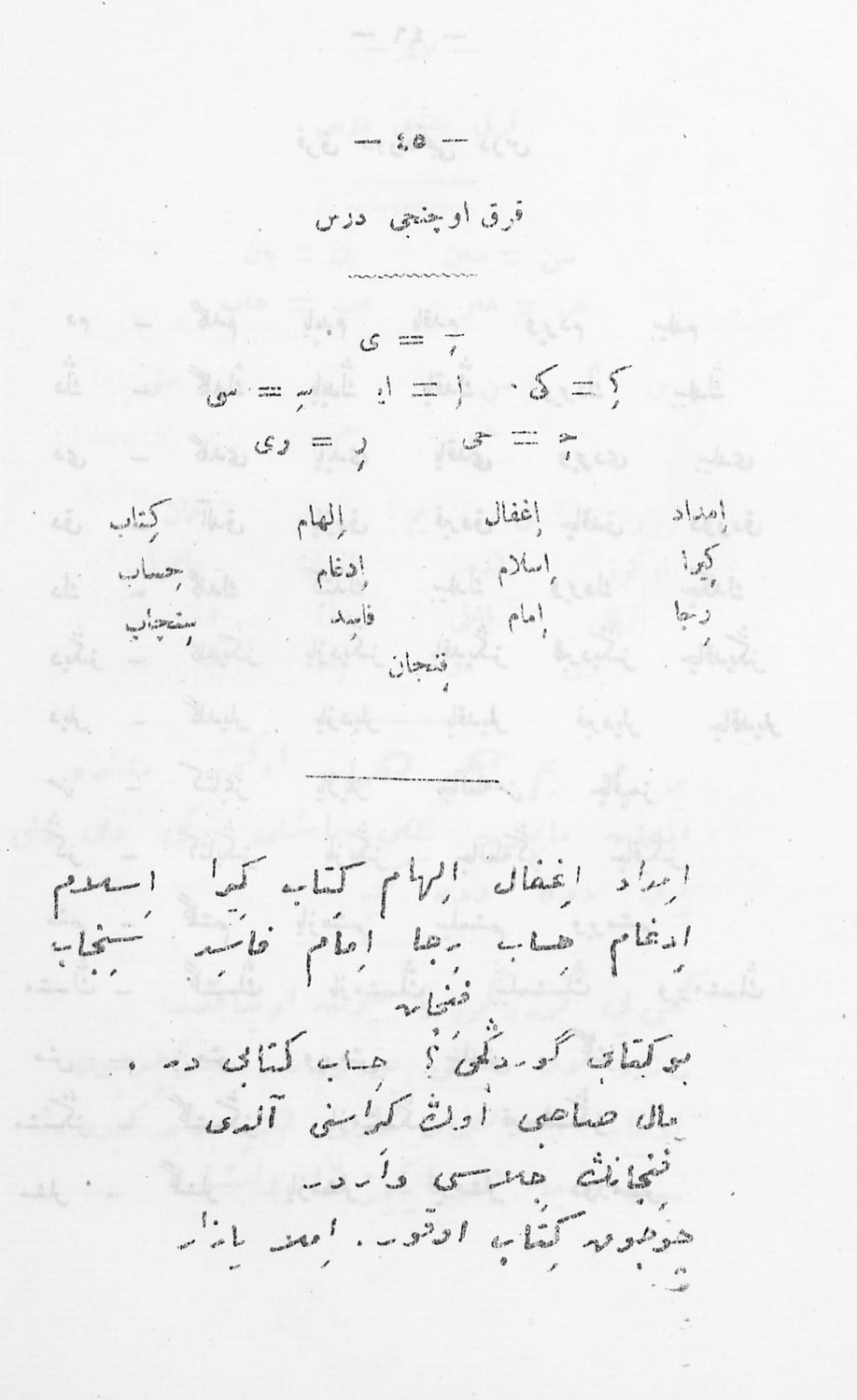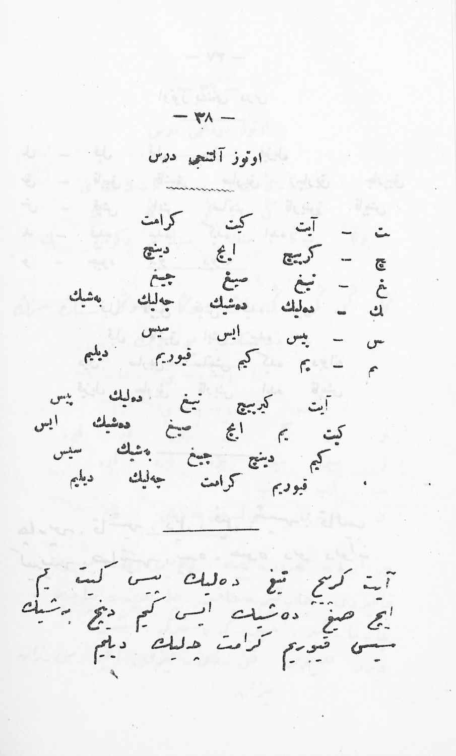 Κωδικός αναγνώρισης: 03-20644180 Τίτλος: Αναγνωστικόν του Κράτους Α΄ Τάξεως (...εις τουρκικήν γλώσσαν...δια τους μαθητάς...των Οθωμανικών Δημοτικών Σχολείων του Κράτους) Μέγεθος και υπόστρωμα: Σχολικό εγχειρίδιο, σκληρό εξώφυλλο, 71 σελίδες. |