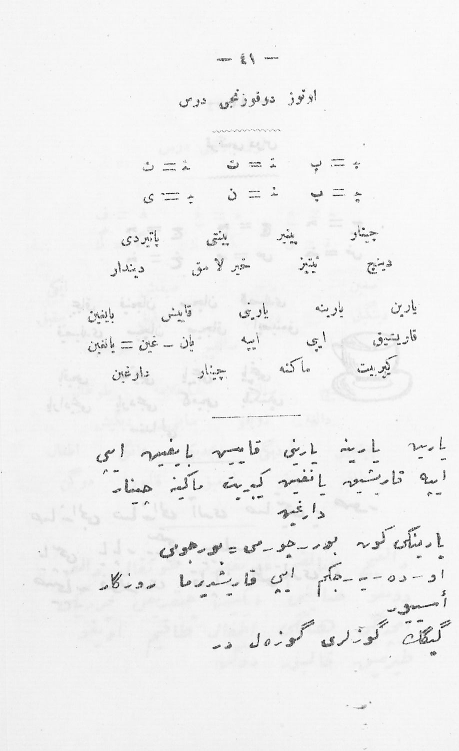 Αναγνωστικό για τους μαθητές της Α΄ τάξης των Μουσουλμανικών Σχολείων που περιέχει κείμενα στα τουρκικά από την κοινωνική και την οικογενειακή ζωή και το φυσικό περιβάλλον.