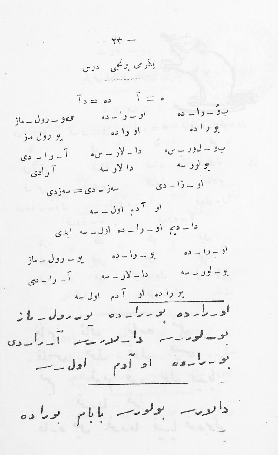 Αναγνωστικόν του Κράτους Α΄ Τάξεως (...εις τουρκικήν γλώσσαν...δια τους μαθητάς...των Οθωμανικών Δημοτικών Σχολείων του Κράτους)