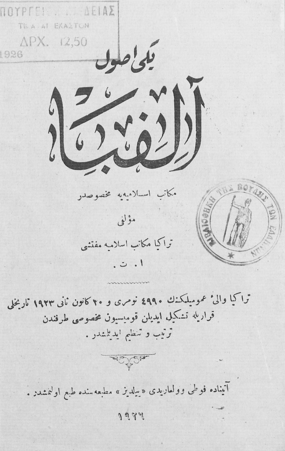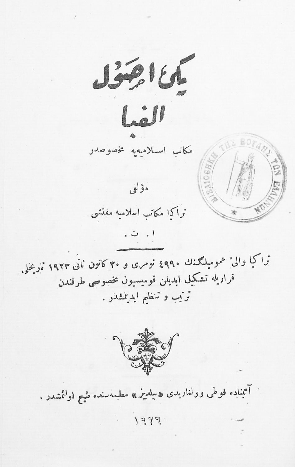 Αναγνωστικόν του Κράτους Α΄ Τάξεως (...εις τουρκικήν γλώσσαν...δια τους μαθητάς...των Οθωμανικών Δημοτικών Σχολείων του Κράτους)