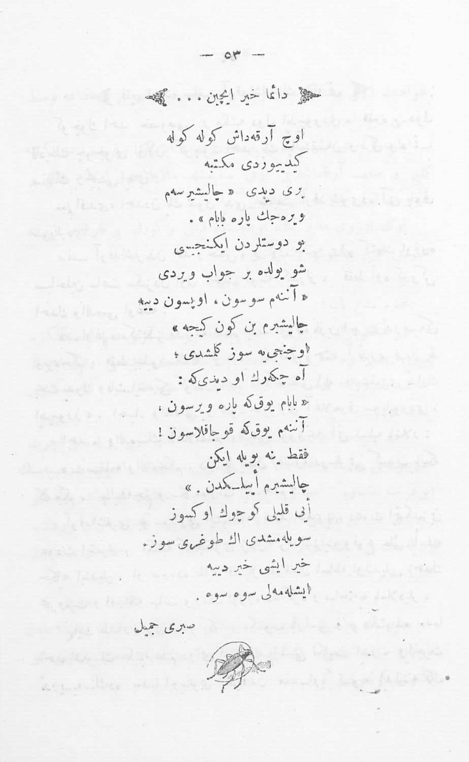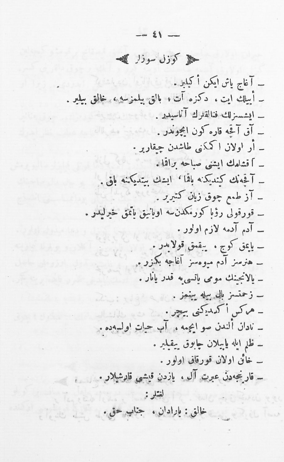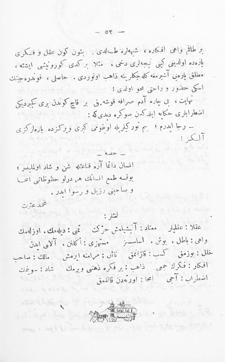 Αναγνωστικό για τους μαθητές της Ε' τάξης των Μουσουλμανικών Σχολείων που περιέχει κείμενα στα τουρκικά από την κοινωνική και την οικογενειακή ζωή και το φυσικό περιβάλλον.