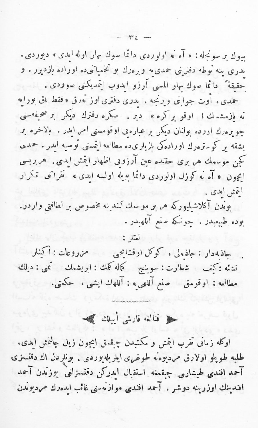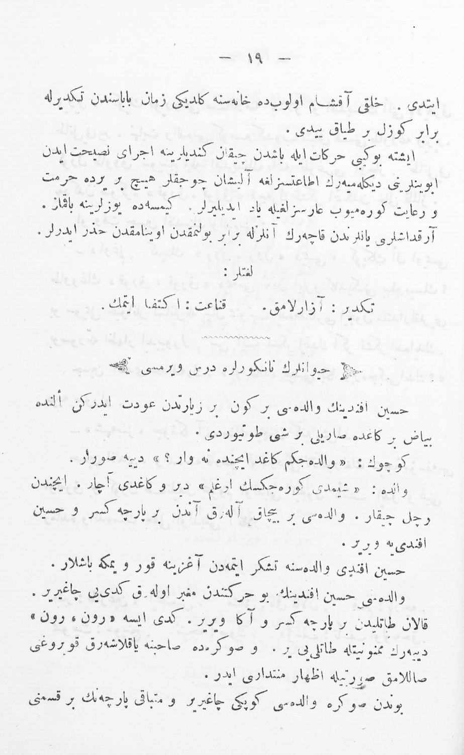 Αναγνωστικό για τους μαθητές της Α΄ τάξης των Μουσουλμανικών Σχολείων που περιέχει κείμενα στα τουρκικά από την κοινωνική και την οικογενειακή ζωή και το φυσικό περιβάλλον.