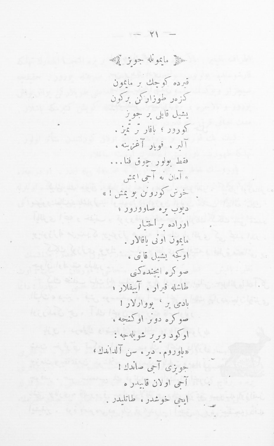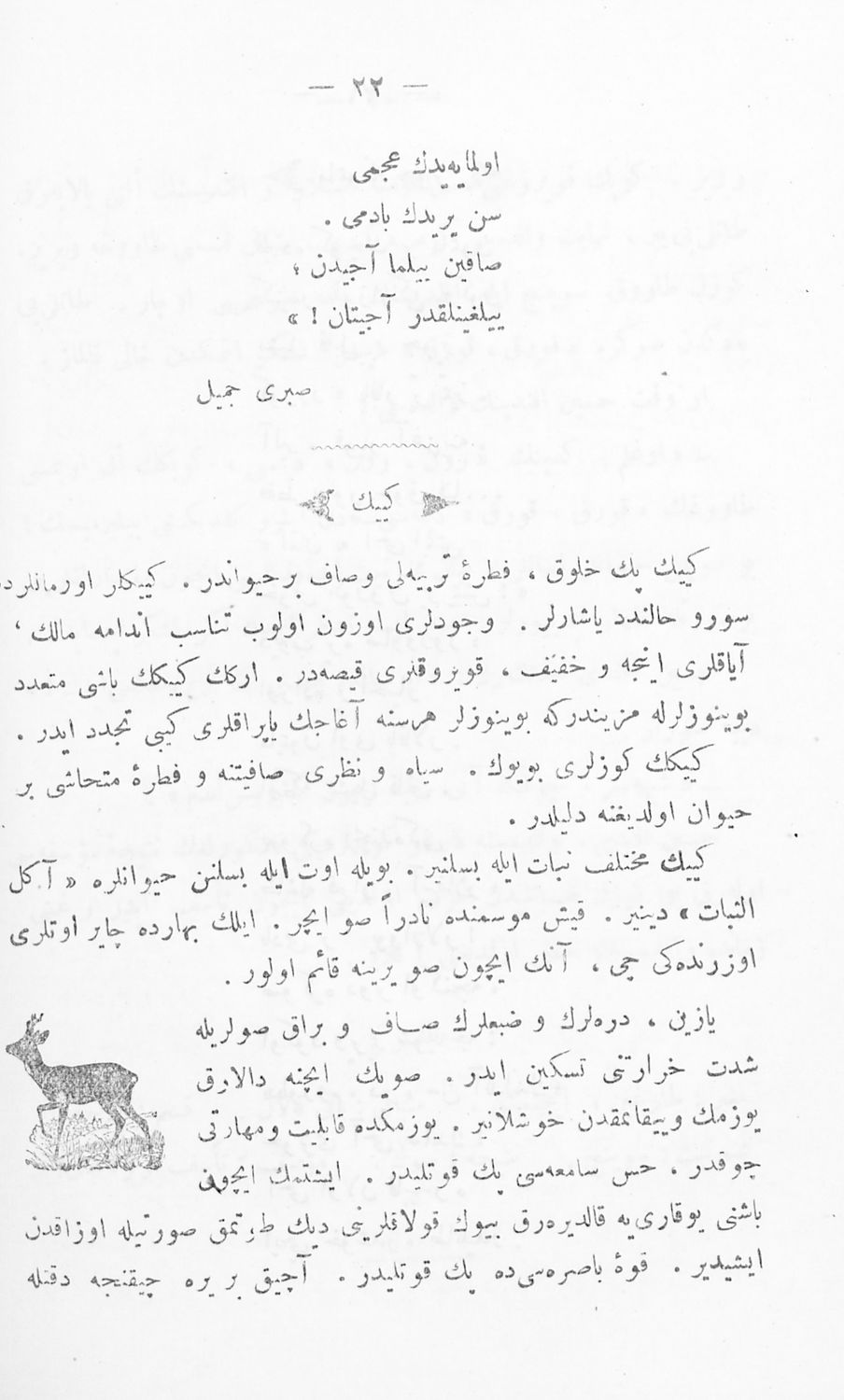 Αναγνωστικό για τους μαθητές της Ε' τάξης των Μουσουλμανικών Σχολείων που περιέχει κείμενα στα τουρκικά από την κοινωνική και την οικογενειακή ζωή και το φυσικό περιβάλλον.